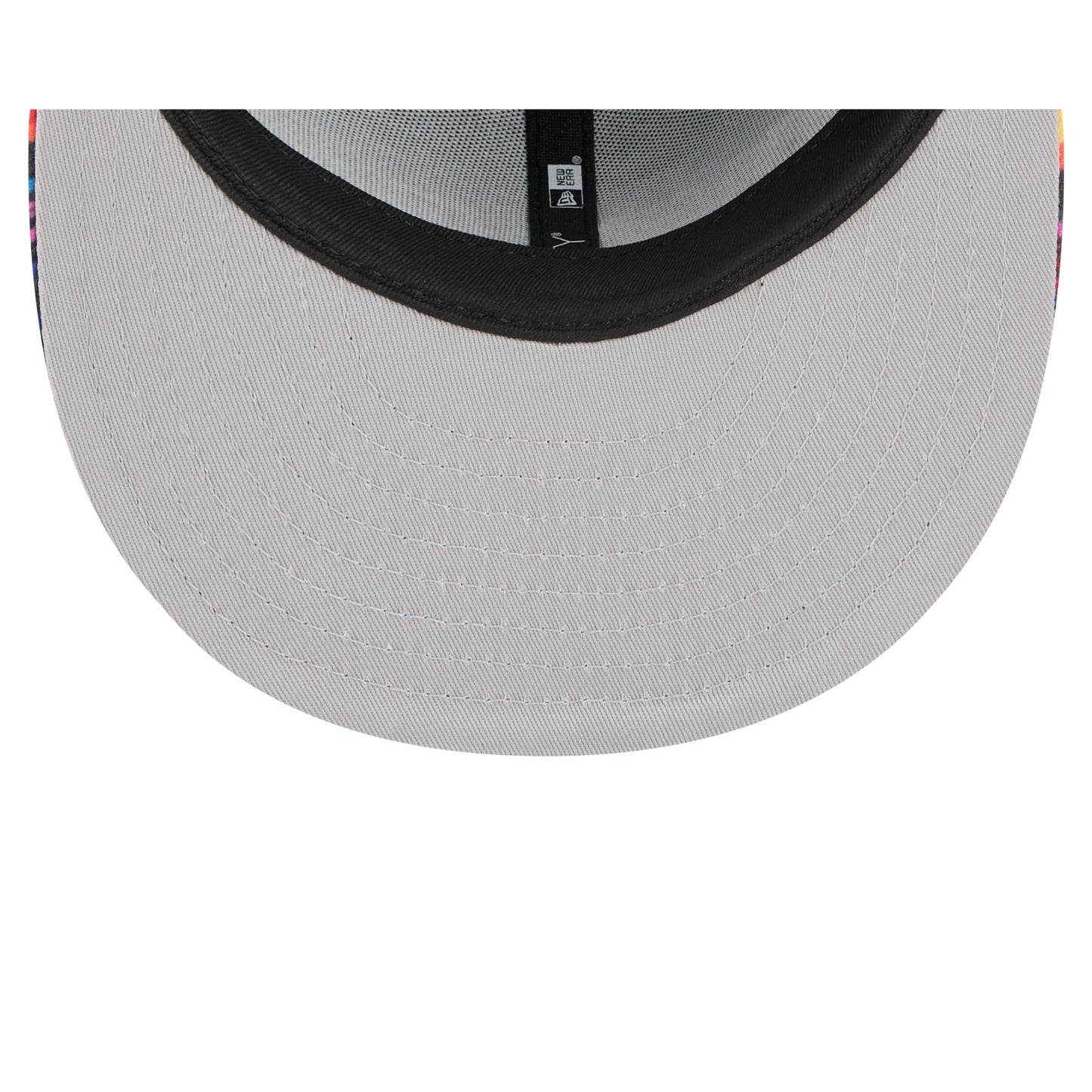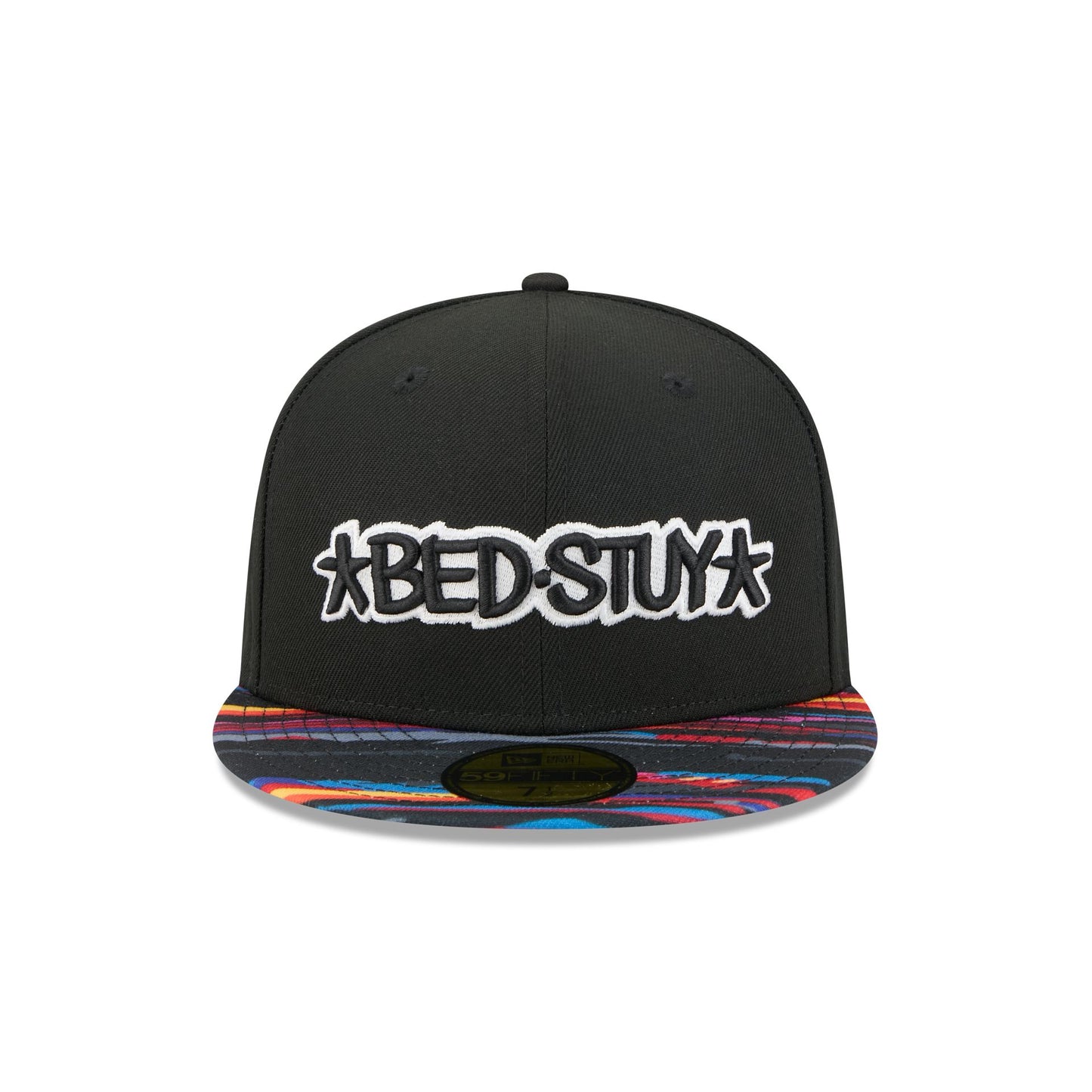 The Brooklyn Nets 2025 City Edition 59FIFTY Fitted Cap features an embroidered Nets City Edition logo at the front panels with a logo at the right-wear side. Additional details include the NBA Logoman at the rear and a gray undervisor.