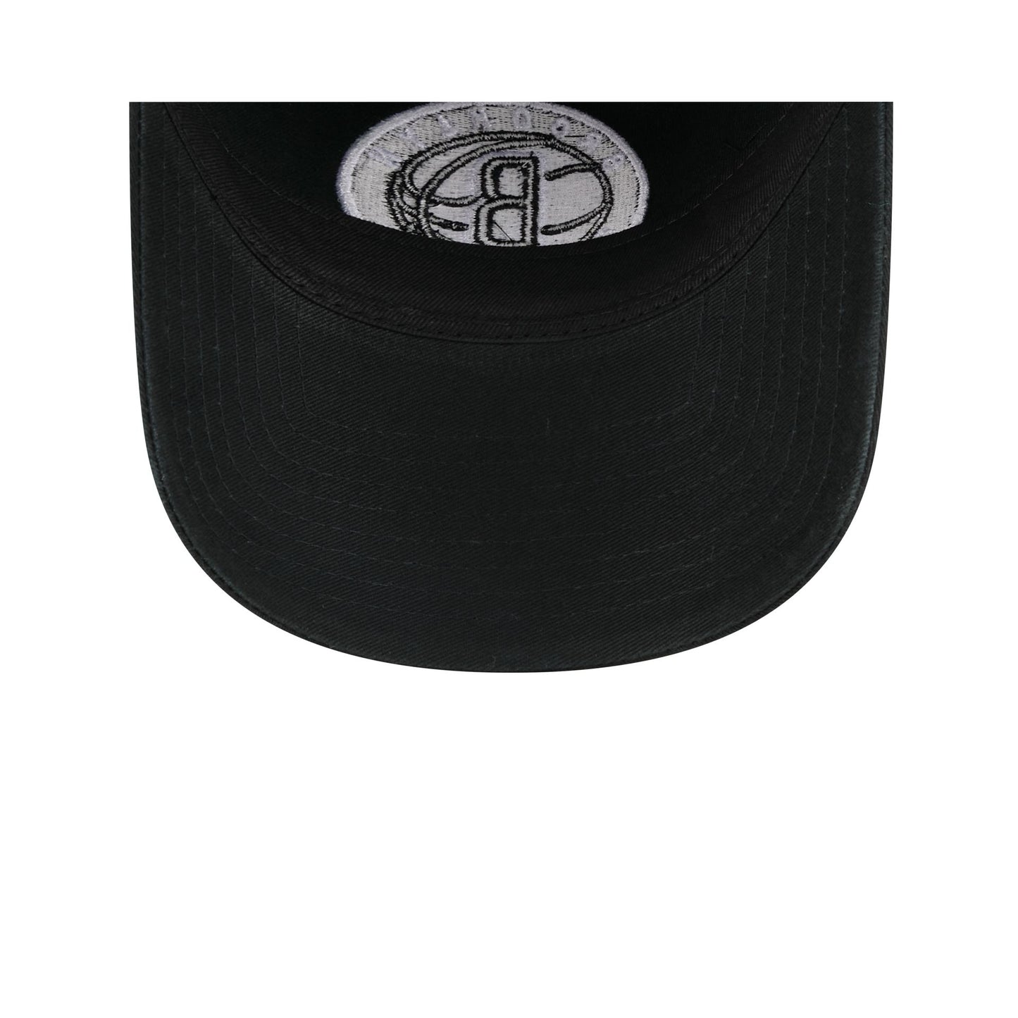 The Brooklyn Nets Black 9TWENTY Adjustable Cap features an embroidered Nets logo at the front panels with a matching woven team logo tag at the adjustable D-Ring closure at the rear.