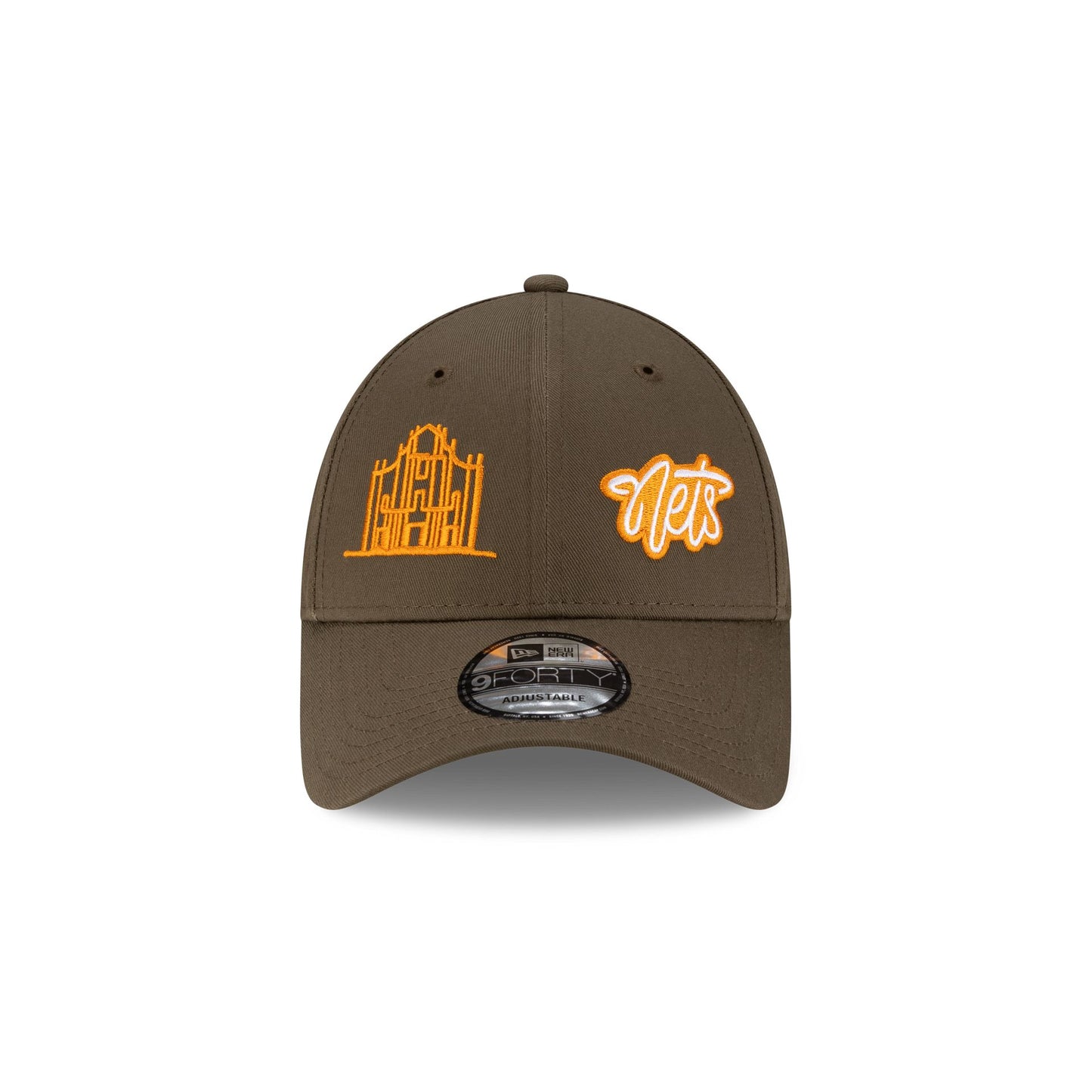 The Brooklyn Nets China Games Brown 9FORTY Adjustable Cap features an embroidered Nets graphic at each side of the front panels and an adjustable D-Ring closure at the rear.