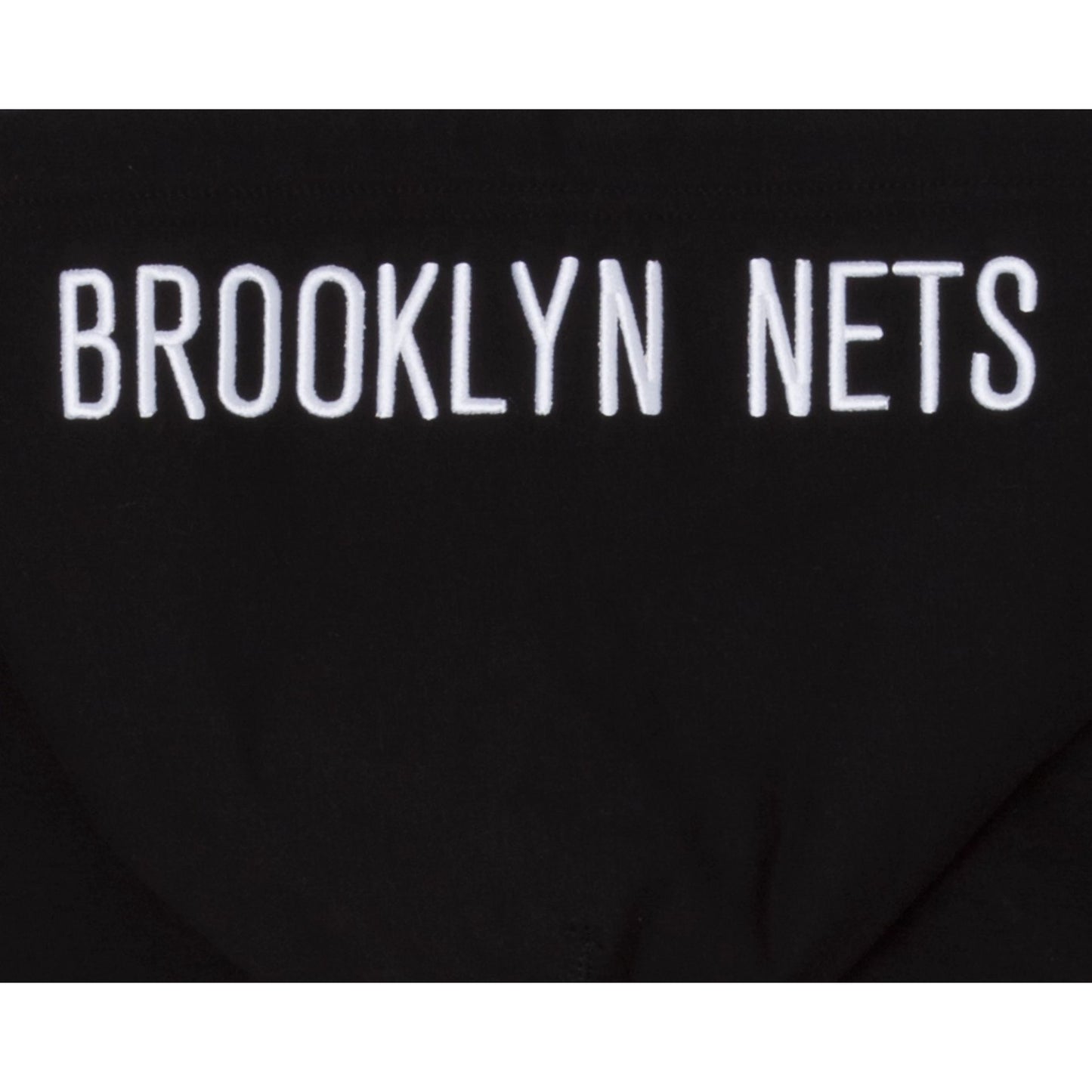 The Brooklyn Nets Logo Select Hoodie features a chenille applique Nets logo at the left chest with team patches at each sleeve and an embroidered team wordmark at the hood.