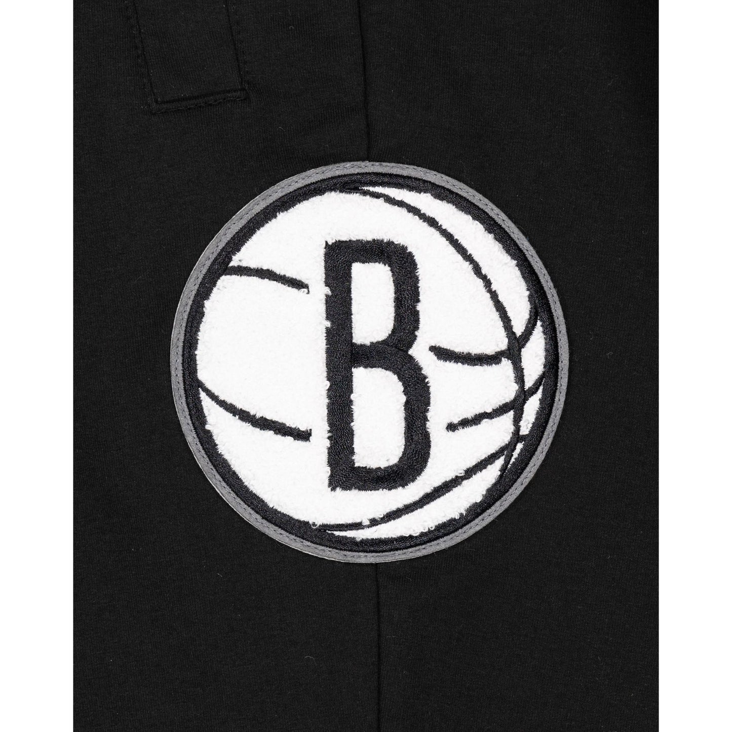 The Brooklyn Nets Logo Select Jogger features a chenille applique Nets logo and embroidered wordmark at the left leg with an alternate team logo at the right ankle.