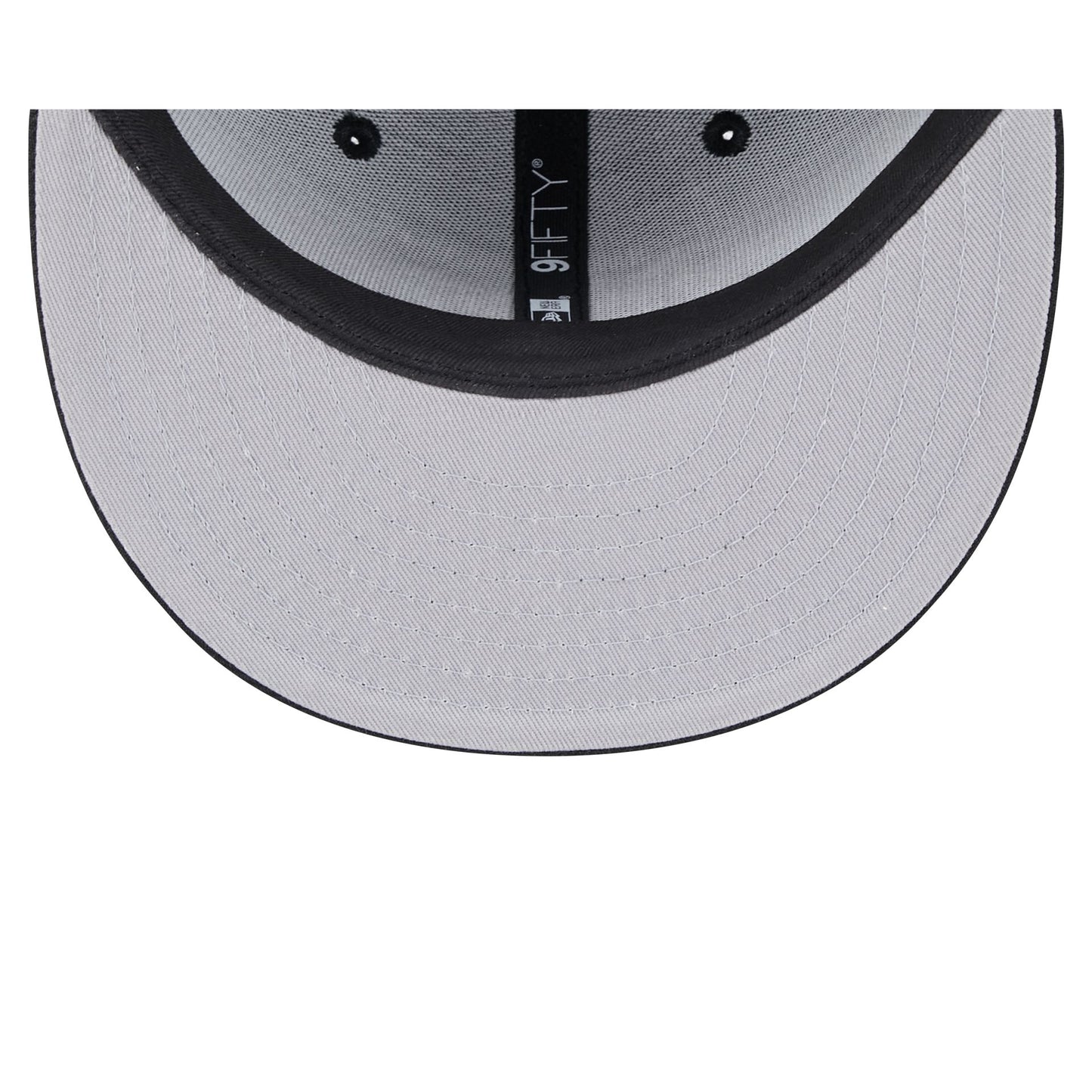 The Brooklyn Nets Kids 9FIFTY Snapback Hat features an embroidered Nets wordmark at the front panels with a matching team logo at the right-wear side. Additional details include a gray undervisor and a snapback closure at the rear.