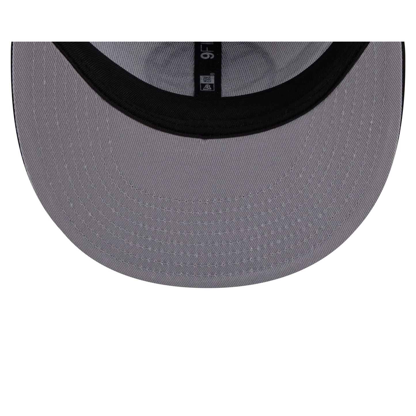 The Brooklyn Nets Swept 9FIFTY Snapback features an embroidered Nets logo at the front panels with a brushstroke wordmark graphic at the right-wear side. Additional details include an adjustable snapback closure at the rear and a gray undervisor.