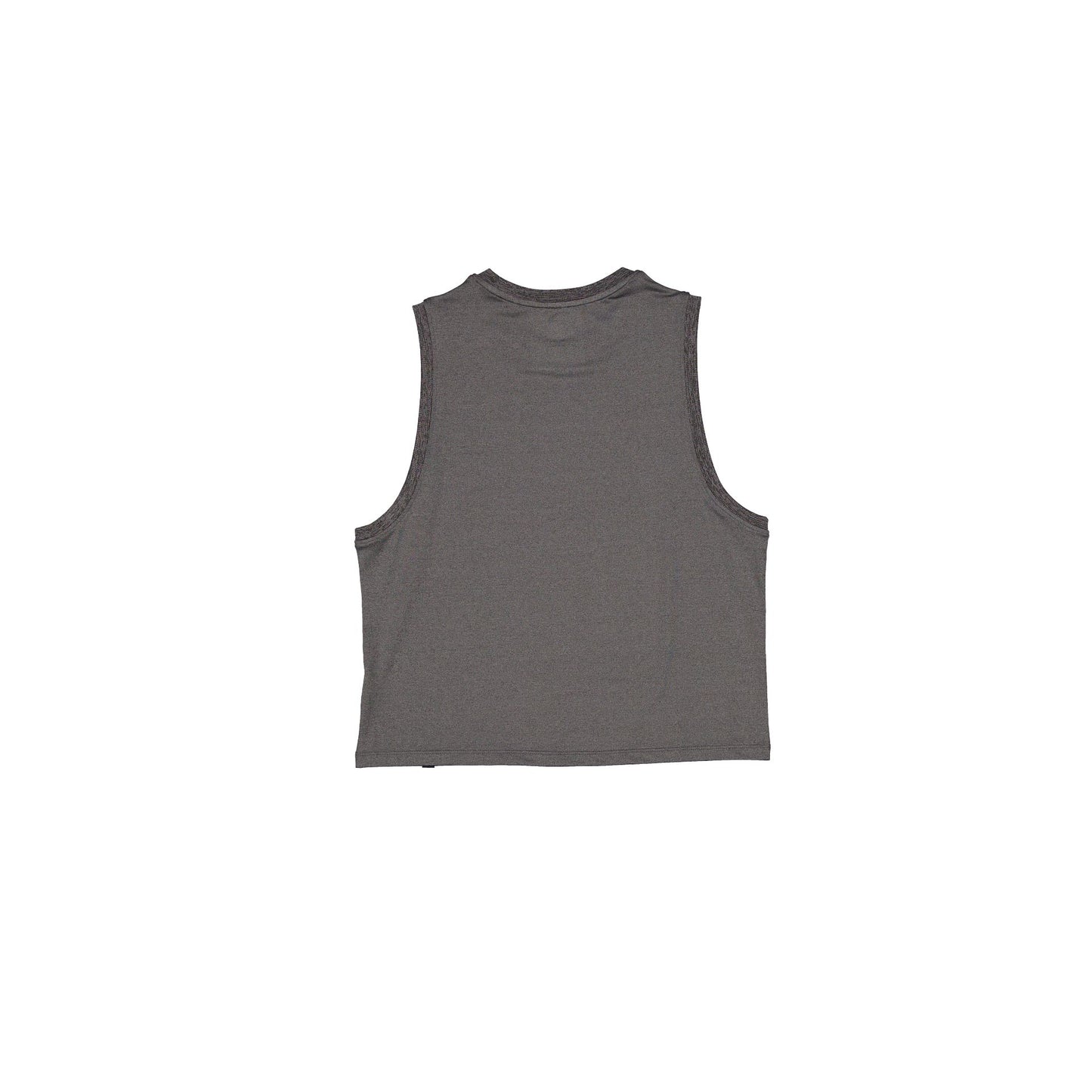 The Buffalo Bills 2025 Functional Fandom Gray Women's Tank Top features a silicone print Bills wordmark logo at the chest with an Official NFL Combine Authentic patch at the right hip. Additional details include moisture-wicking and antimicrobial fabric with UV protection.