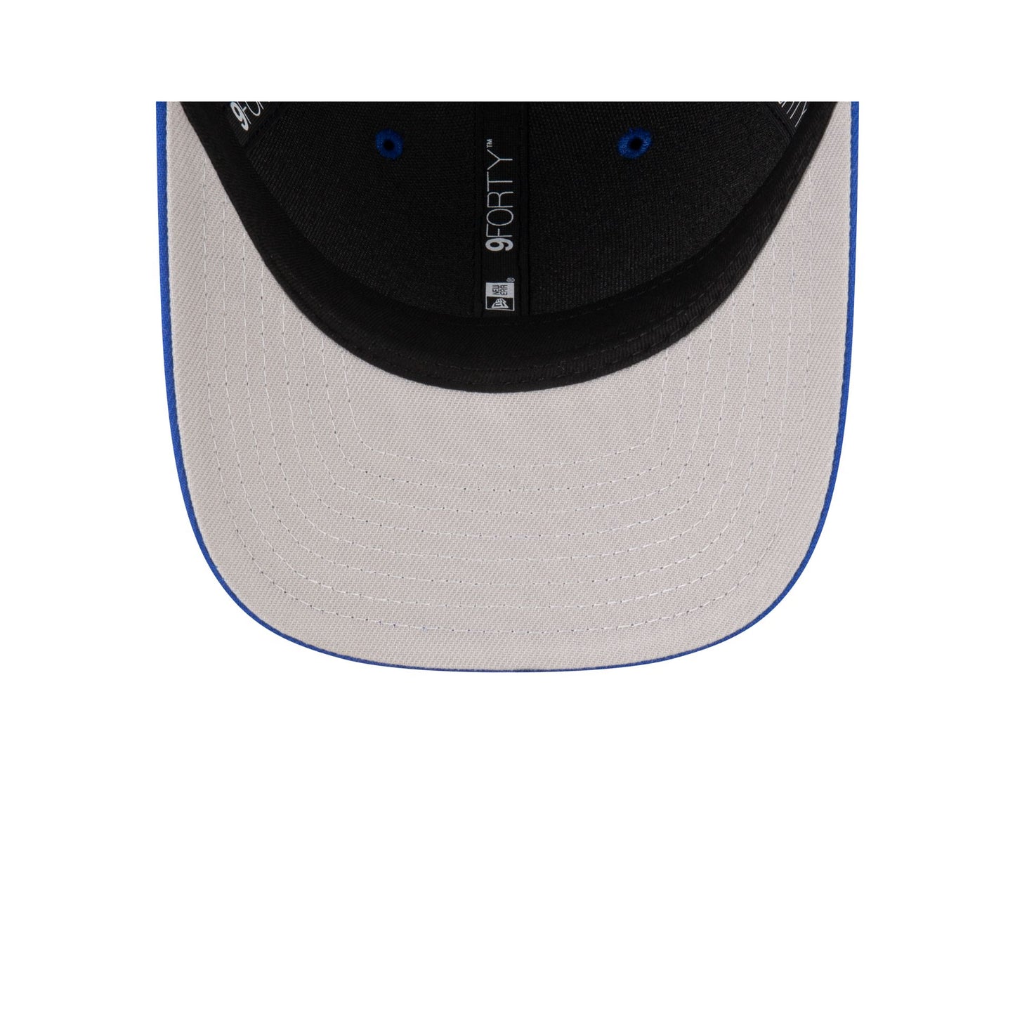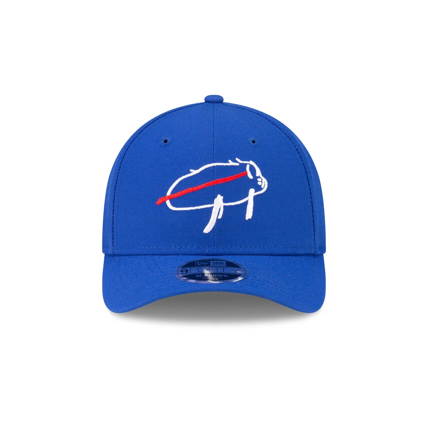 The Buffalo Bills Billustration Blue 9FORTY M-Crown Snapback features an embroidered Bills Josh Allen Bills logo at the front panels with an adjustable snapback closure at the rear.