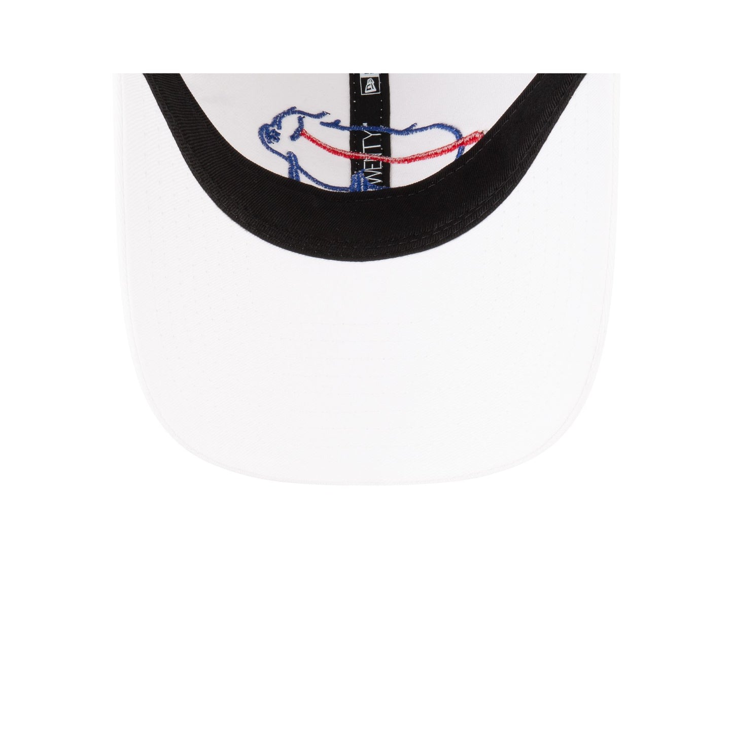 The Buffalo Bills Billustration White 9TWENTY Adjustable Cap features an embroidered Bills Josh Allen Bills logo at the front panels with an adjustable D-Ring closure at the rear.
