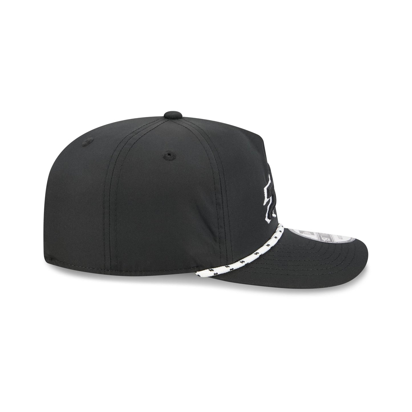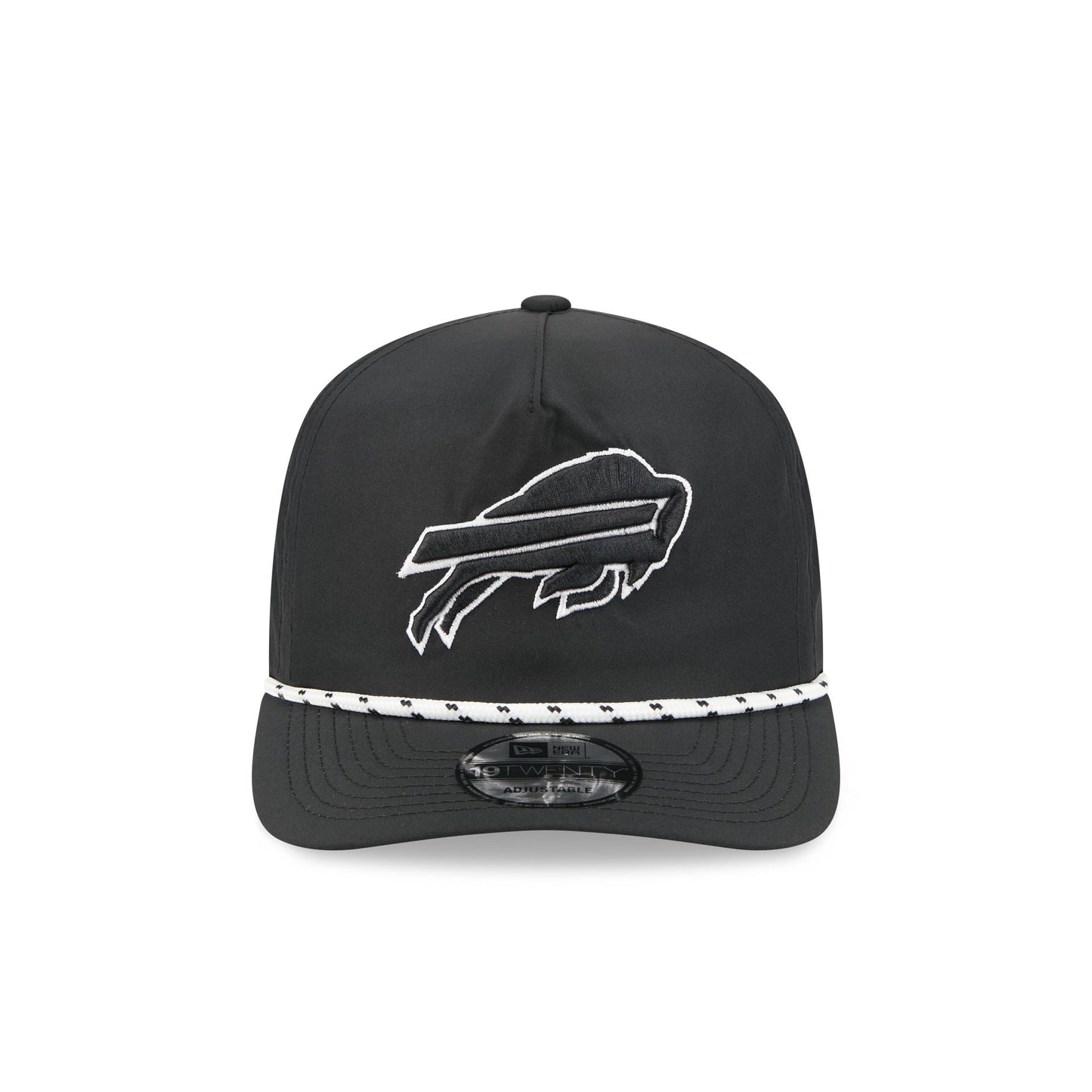 The Buffalo Bills Black and White Rope 19TWENTY Snapback features an embroidered Bills logo and rope at the front with a snapback closure at the rear and a gray undervisor.