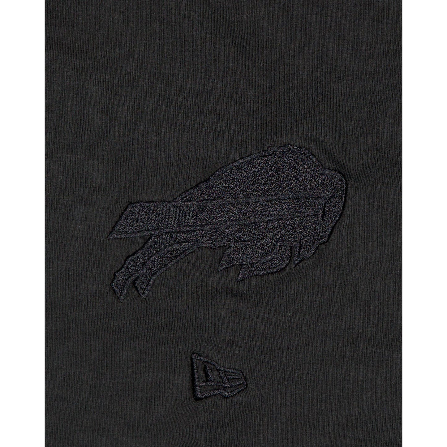 The Buffalo Bills Black on Black Logo Select T-Shirt features a satin applique with a tonal stitch Bills wordmark at the chest and an embroidered team logo at the left-wear sleeve.