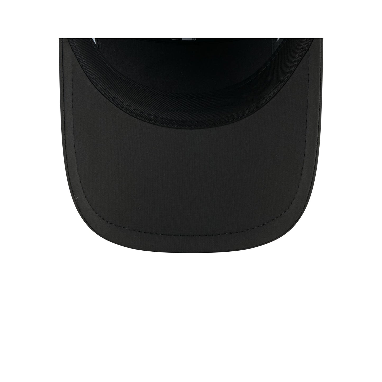 The Buffalo Bills Black Poly Runner Cap features a heat sealed Bills logo at the front panels with mesh side panels. Additional details include a silicone patch above an adjustable drawstring closure at the rear.