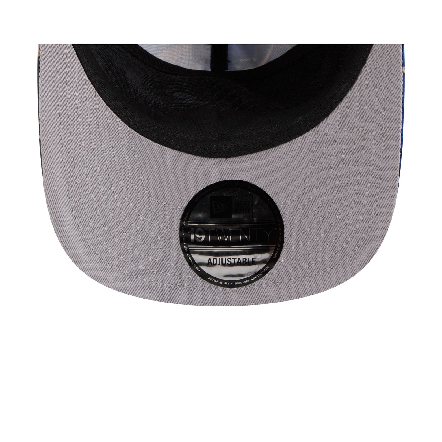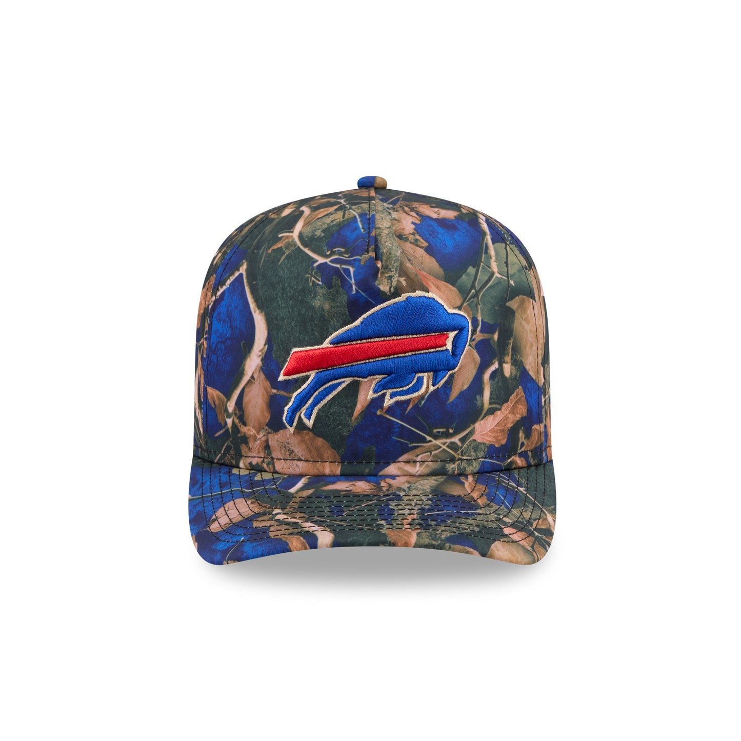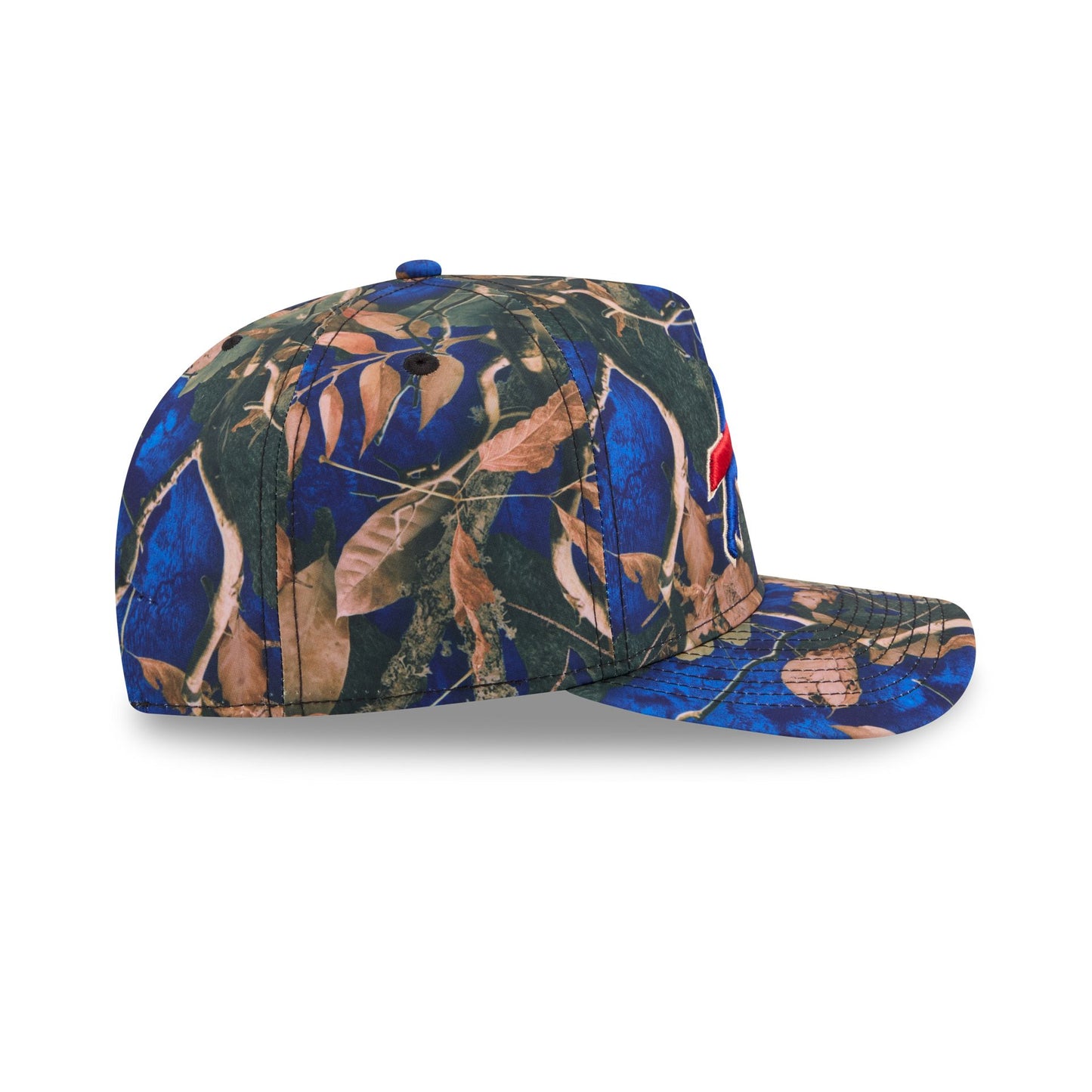 The Buffalo Bills Leaves 19TWENTY Adjustable Cap features an embroidered Bills logo at the front panels with a forest leaves pattern throughout. Additional details include an adjustable snapback closure at the rear and a gray undervisor.
