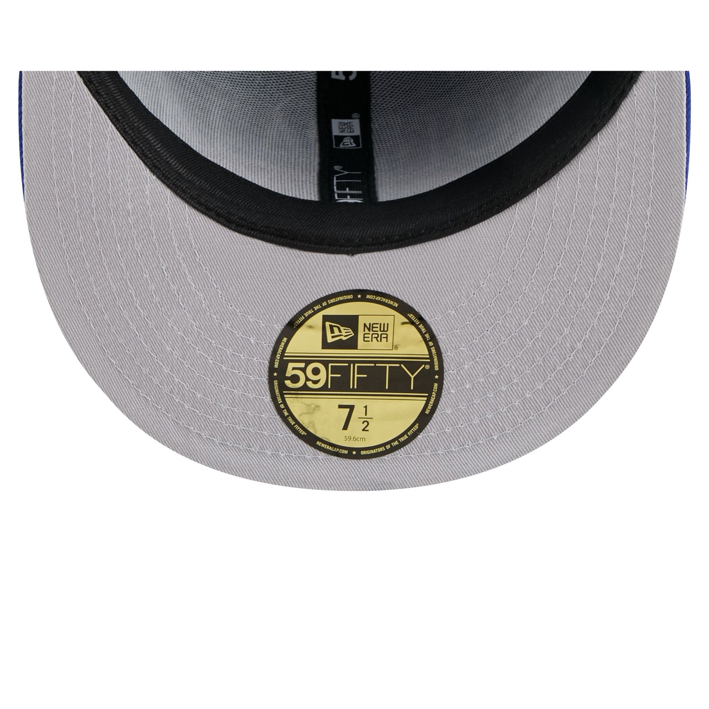 The Buffalo Bills Oversized 59FIFTY Fitted Cap features an embroidered Bills Historic oversized graphic at the front panels and visor. Additional details include a logo at the right-wear side, an NFL Shield logo at the rear, and a gray undervisor.