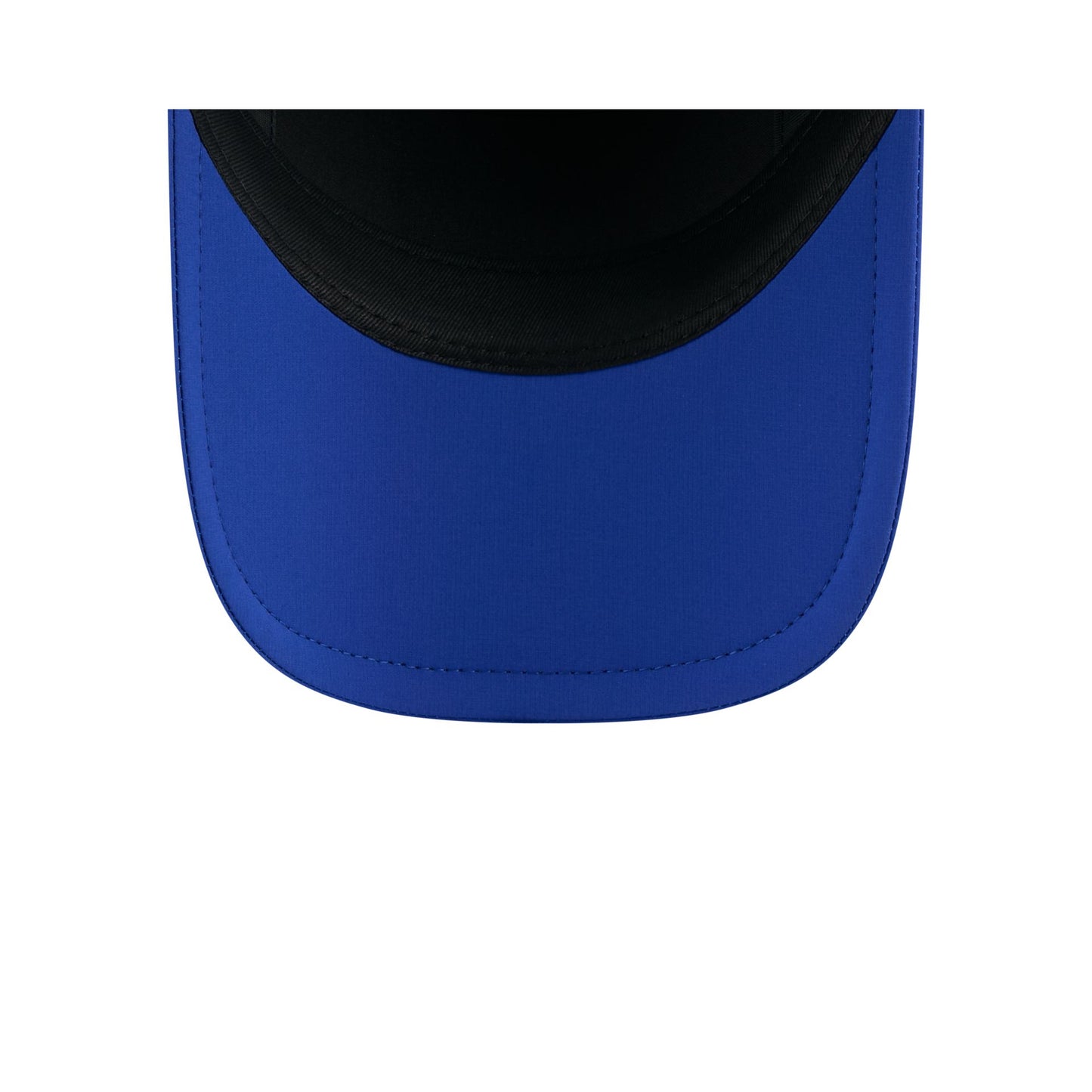 The Buffalo Bills Poly Runner Cap features a heat sealed Bills logo at the front panels with mesh side panels. Additional details include a silicone patch above an adjustable drawstring closure at the rear.