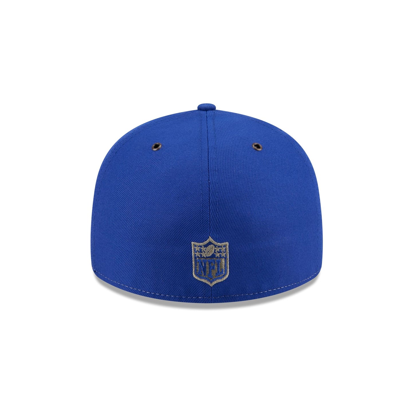 The Buffalo Bills Quilted Low Profile 59FIFTY Fitted Cap features a faux leather debossed applique Bills patch at the front panels with a matching 50th Anniversary team patch at the right-wear side and an embroidered NFL Shield at the rear.