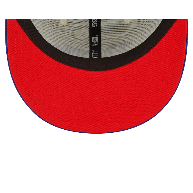The Buffalo Bills Script 59FIFTY Fitted Cap features an embroidered Bills script at the front panels with a team logo at the rear and a red undervisor.