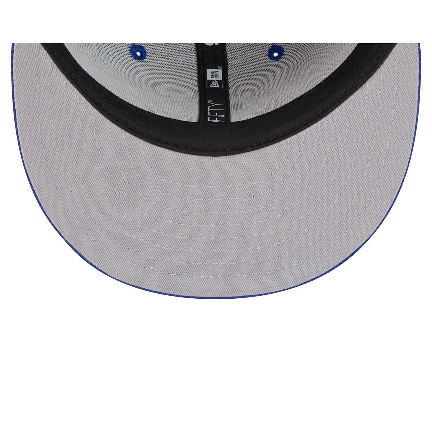 The Buffalo Bills Kids 9FIFTY Snapback Hat features an embroidered Bills wordmark at the front panels with a matching team logo at the right-wear side. Additional details include a gray undervisor and a snapback closure at the rear.