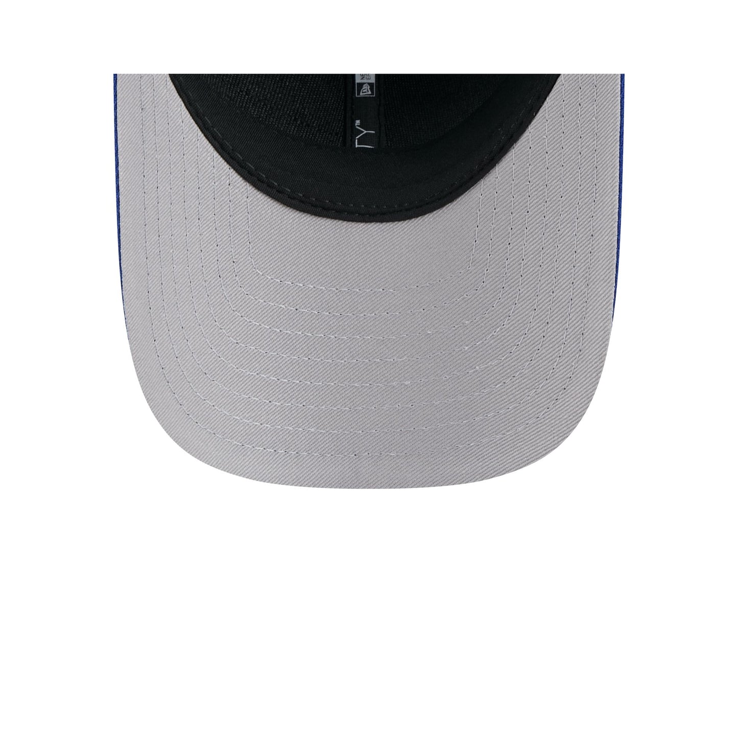 The Buffalo Bills Team 9FORTY M-Crown Snapback features an embroidered Bills logo at the front panels with a matching NFL Shield logo above an adjustable snapback closure at the rear and a gray undervisor.