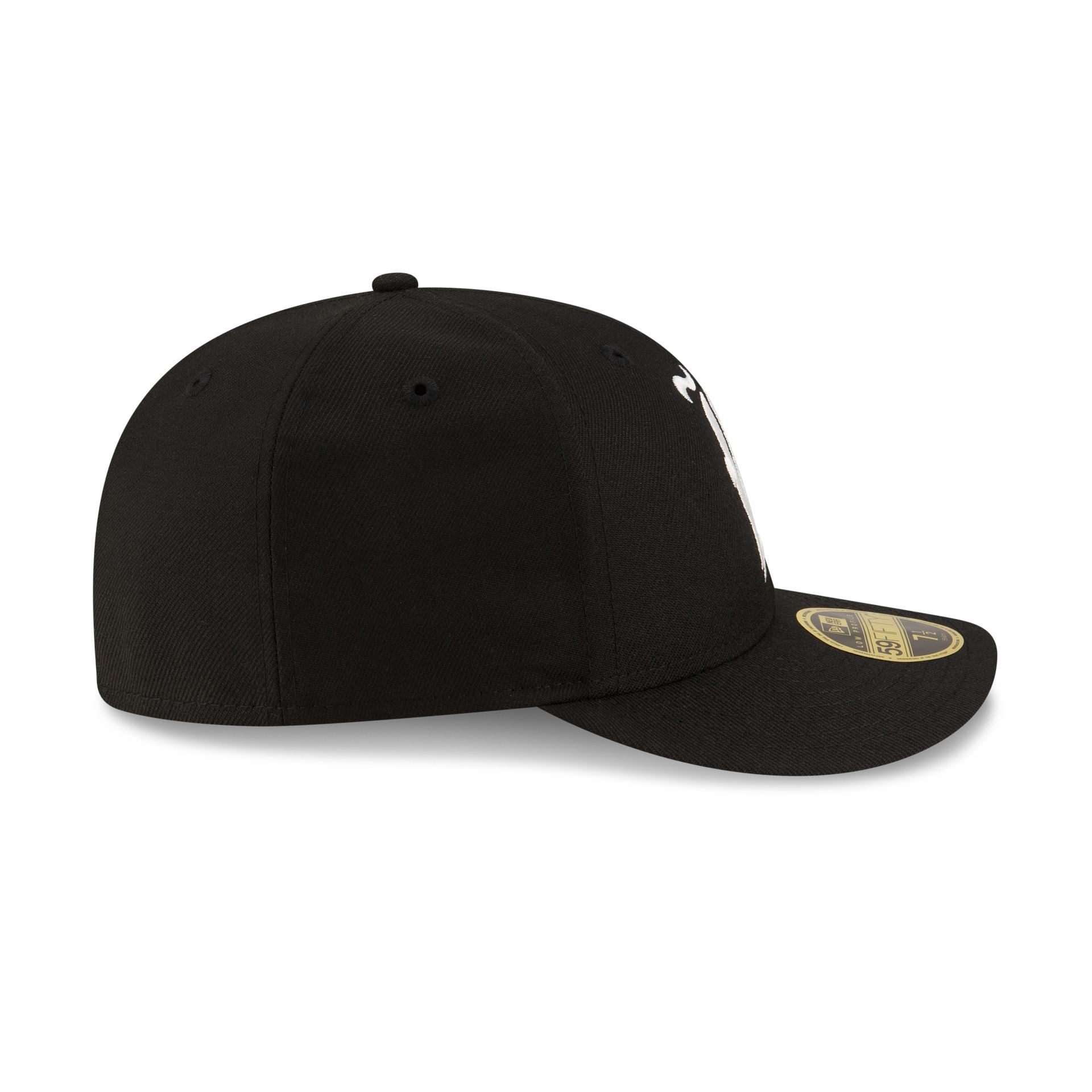 The Buffalo Bisons Gothic Low Profile 59FIFTY Fitted Cap features an embroidered Bisons logo at the front panels with a matching MiLB Batterman logo at the rear and a gray undervisor.
