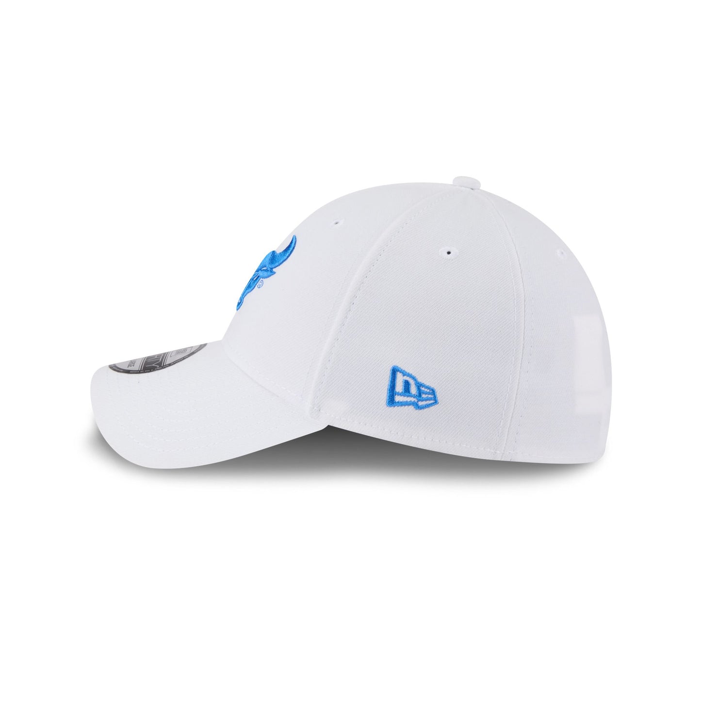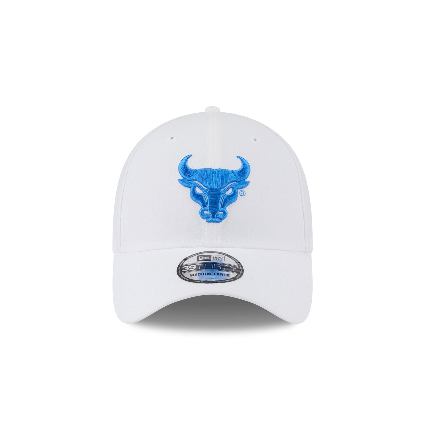 The Buffalo Bulls Optic White 39THIRTY Stretch Fit features an embroidered Bulls logo at the front panels with a team wordmark at the rear.