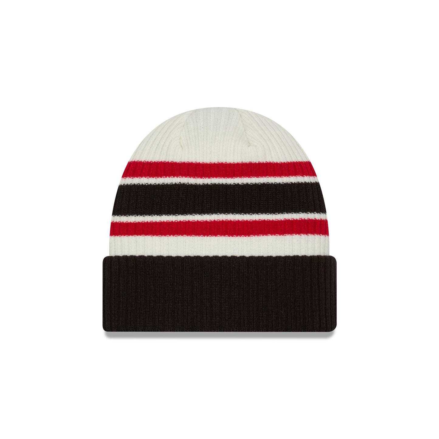 The Buffalo Sabres Alt Vintage Ribbed Beanie features an embroidered Sabres logo at the front cuff and stripes at the crown.