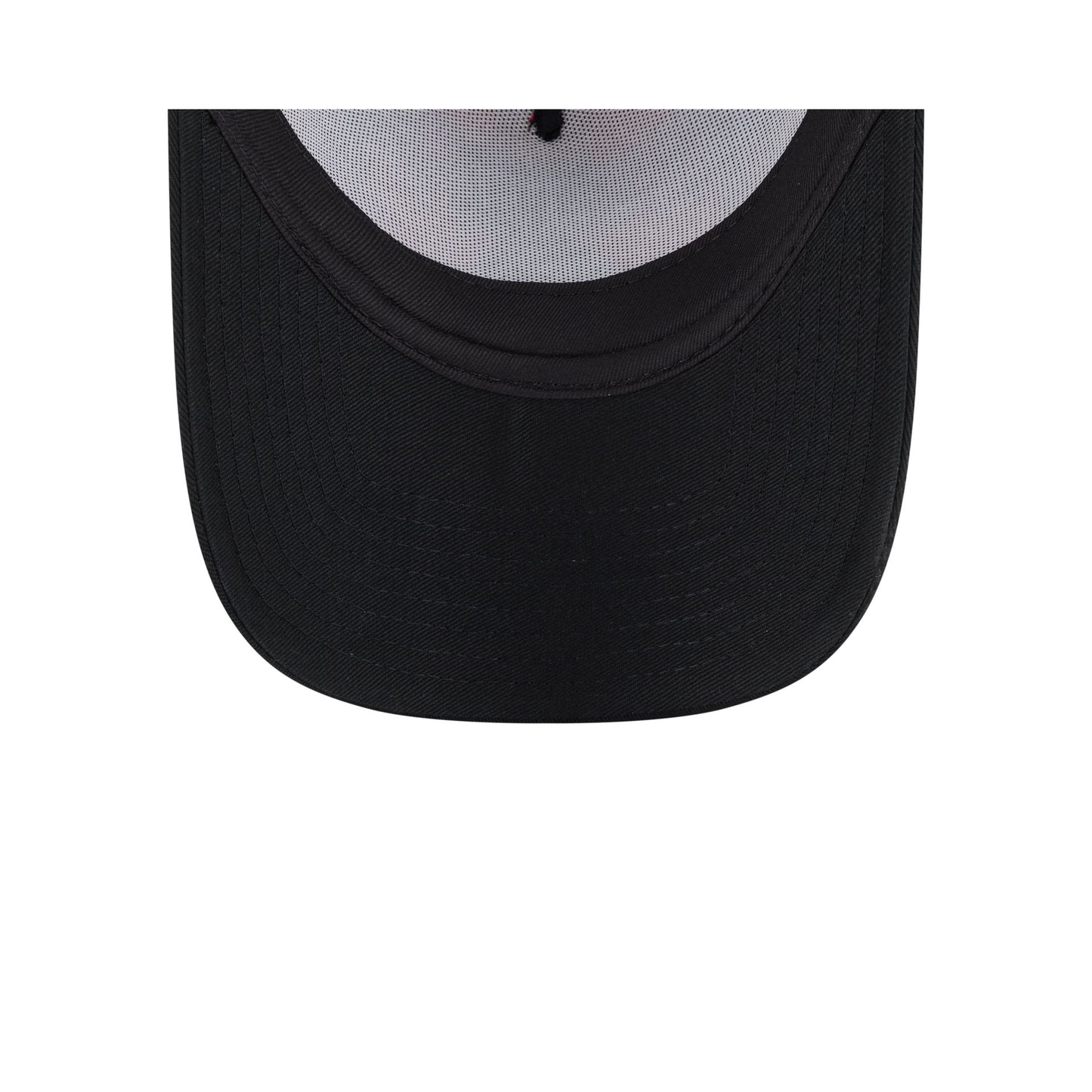 The Buffalo Sabres Evergreen Check 9FORTY A-Frame Trucker features an embroidered Sabres white wordmark and logo at a checkered plaid front panel. Additional details include an adjustable snapback closure at a mesh rear.