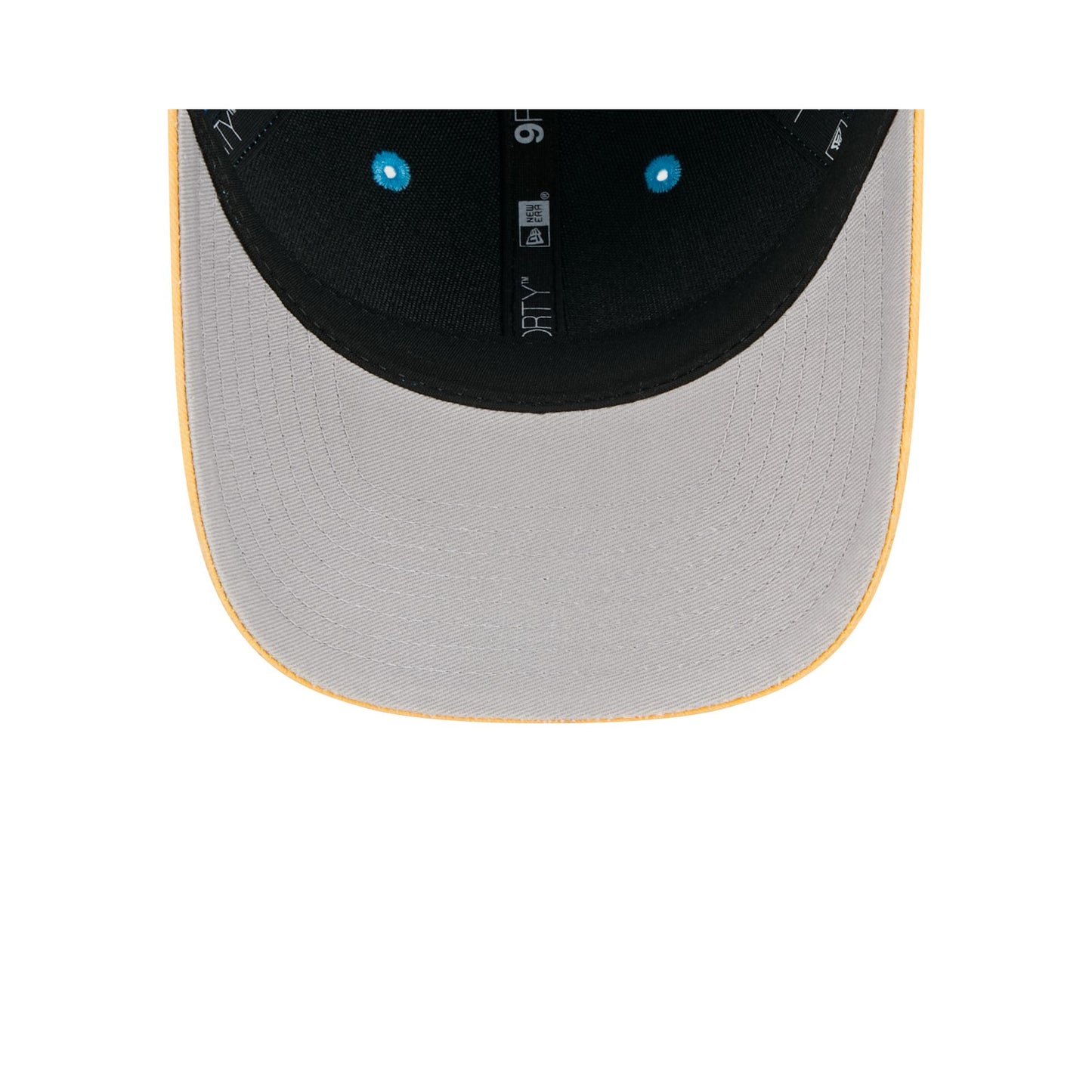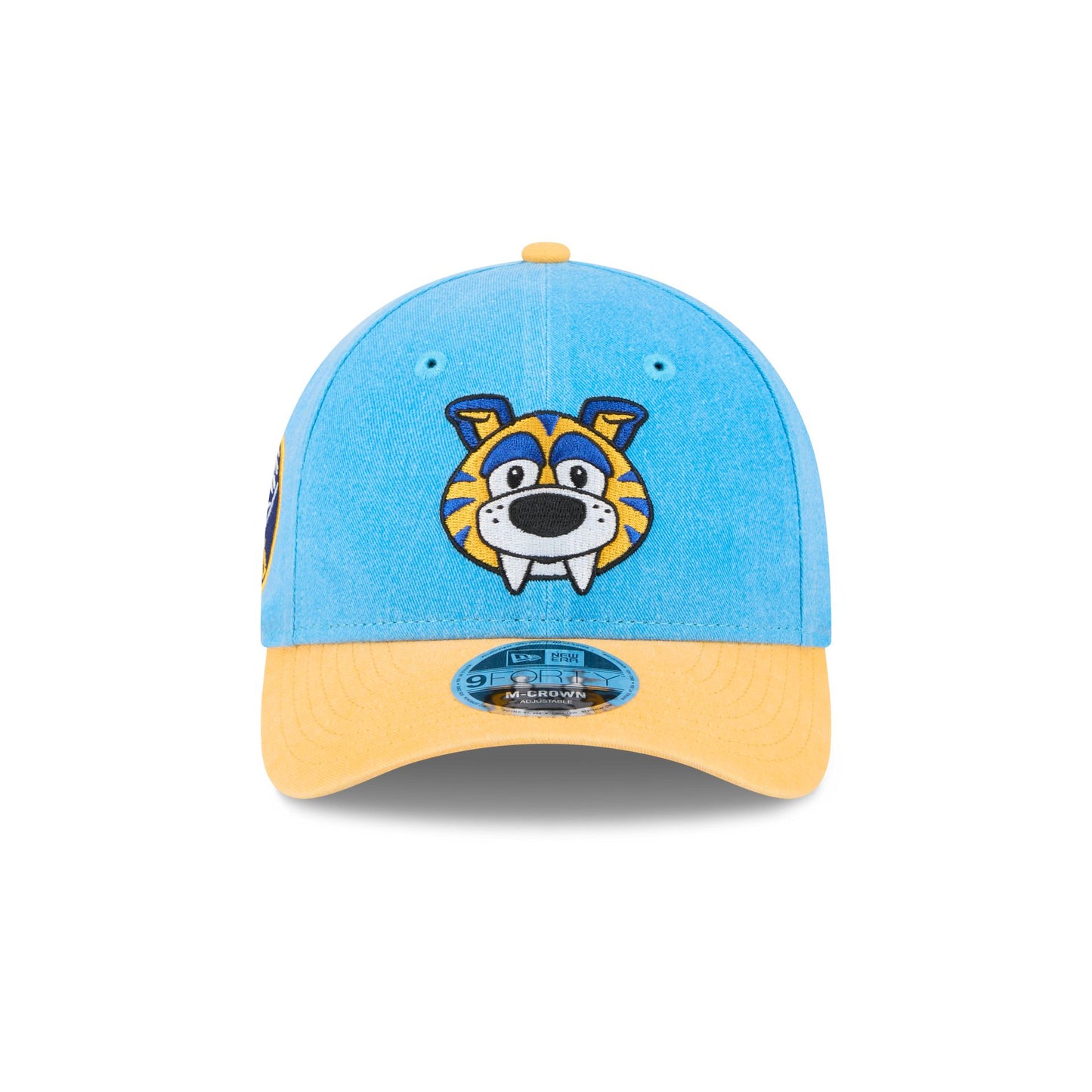 The Buffalo Sabres Mascot 9FORTY M-Crown Snapback features an embroidered Sabres logo at the front panels with a team logo at the right-wear side. Additional details include the mascot's name above an adjustable snapback closure at the rear and a gray undervisor.