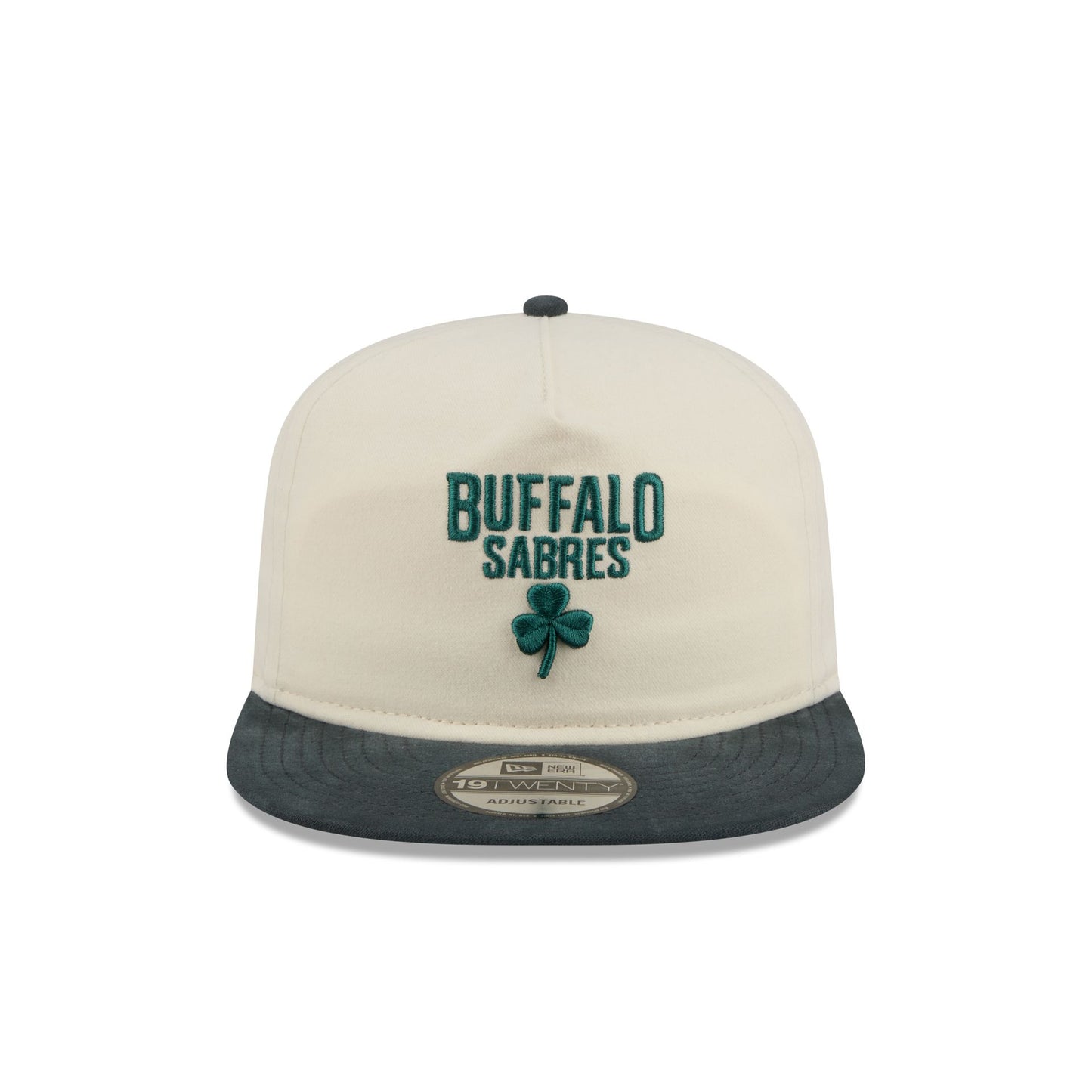The Buffalo Sabres Metallic Logo 19TWENTY Adjustable Cap features an embroidered metallic Sabres logo and clover graphic at the front panels with an adjustable snapback closure at the rear and a gray undervisor.