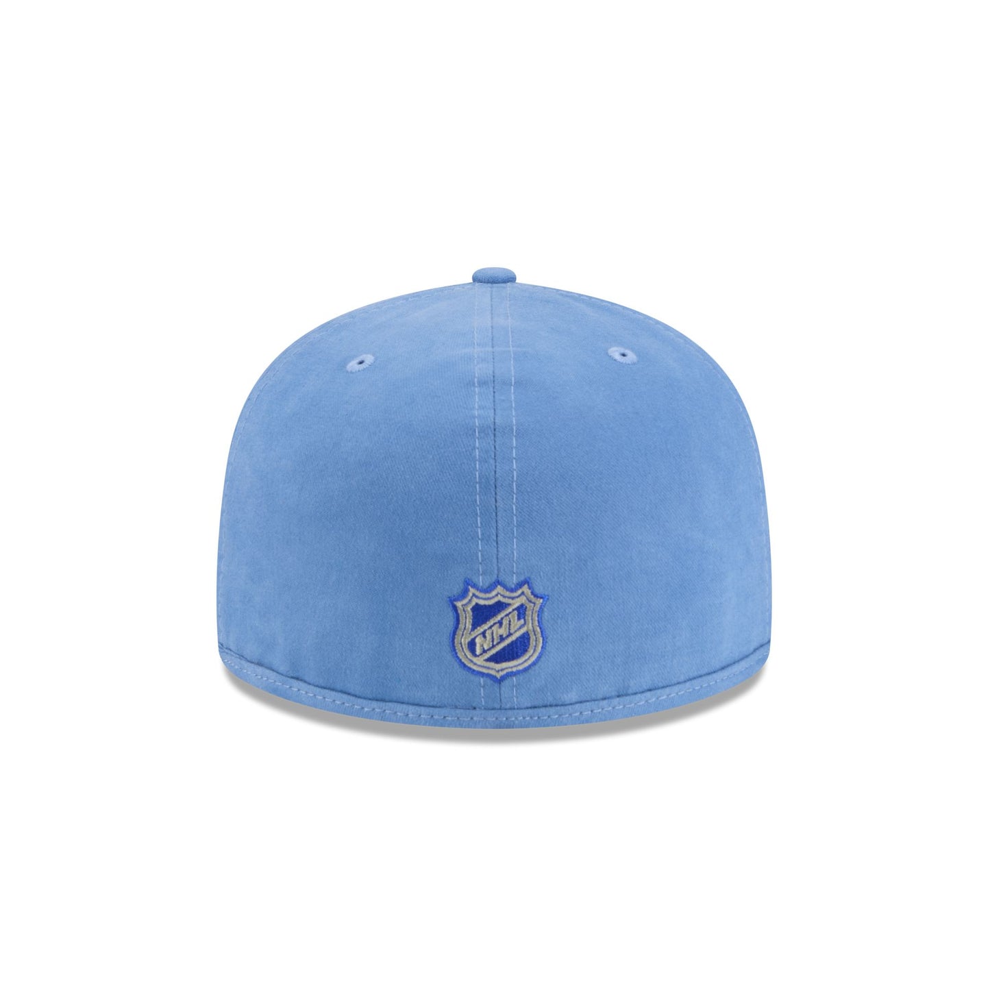 The Buffalo Sabres Quilted 59FIFTY A-Frame Fitted Cap features an embroidered Sabres logo at the front panel with a matching NHL Shield at the rear, a brushed cotton fabrication, and a green undervisor.
