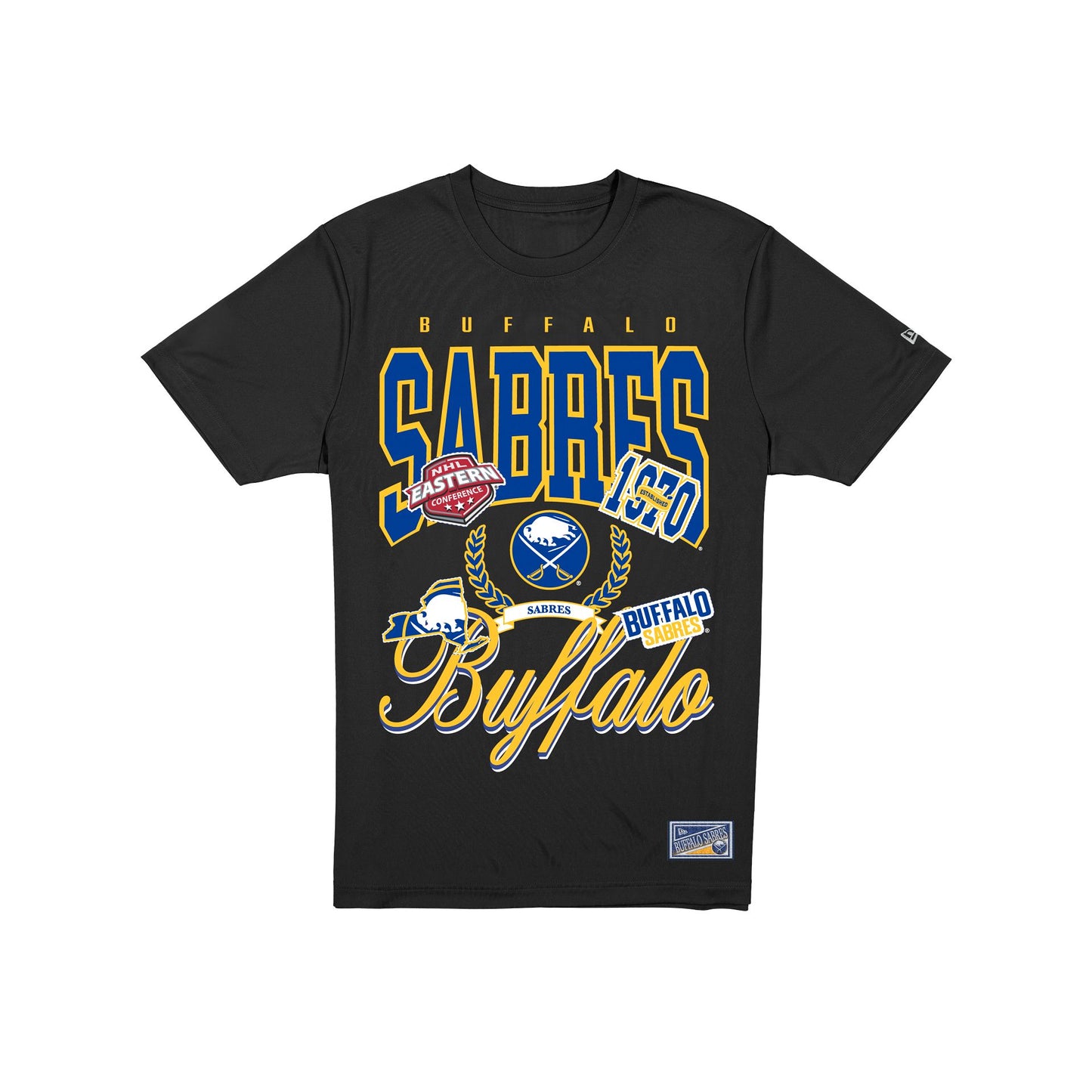 The Buffalo Sabres Sport Classics Vintage Black Oversized T-Shirt features a screen-printed Sabres wordmark and graphic at the front with woven team jocktag at the bottom hem.