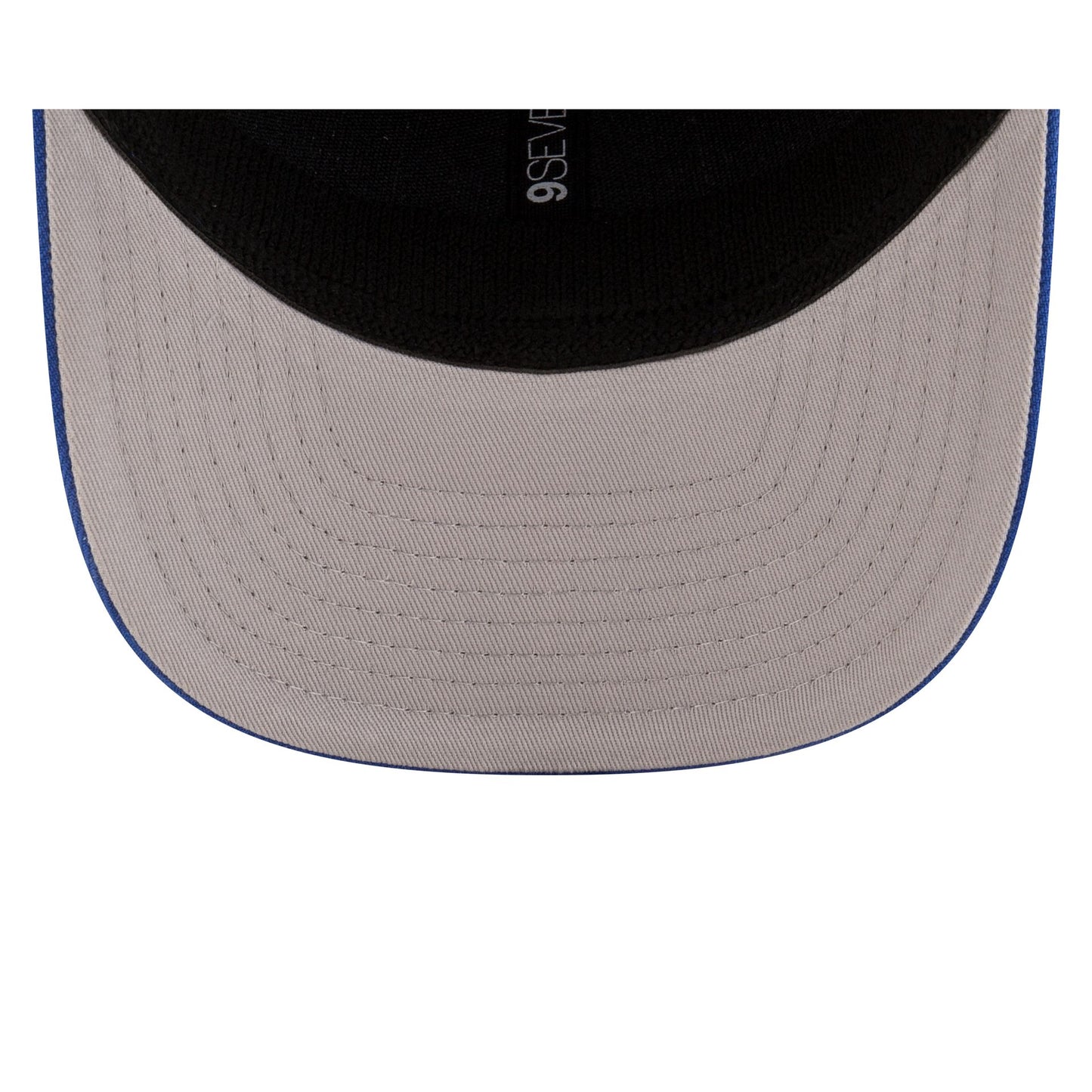 The Buffalo Sabres Team 9SEVENTY Stretch-Snap Cap features an embroidered Sabres logo at the front panels with the NHL Shield logo above an adjustable stretch-snap closure at the rear and a gray undervisor.