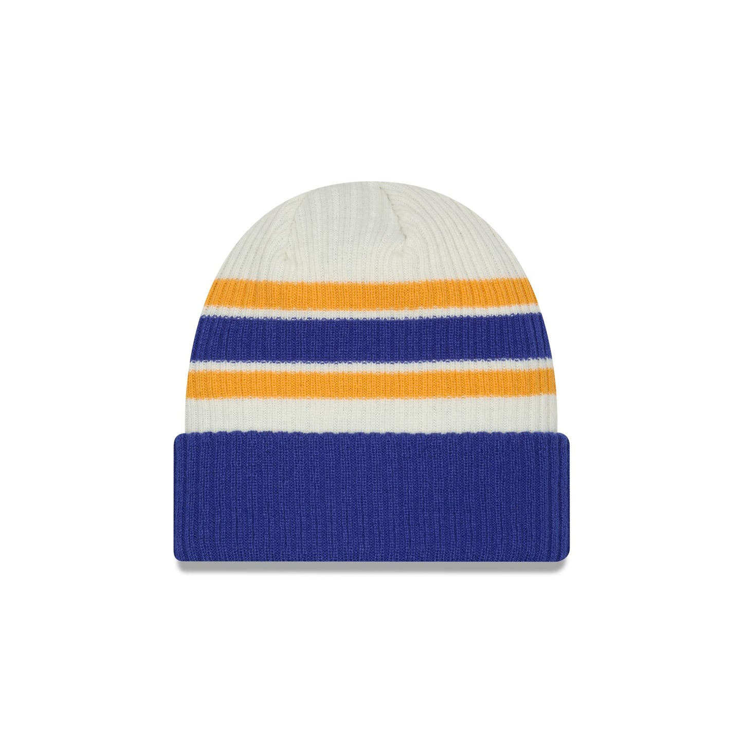 The Buffalo Sabres Vintage Ribbed Beanie features an embroidered Sabres logo at the front cuff and stripes at the crown.