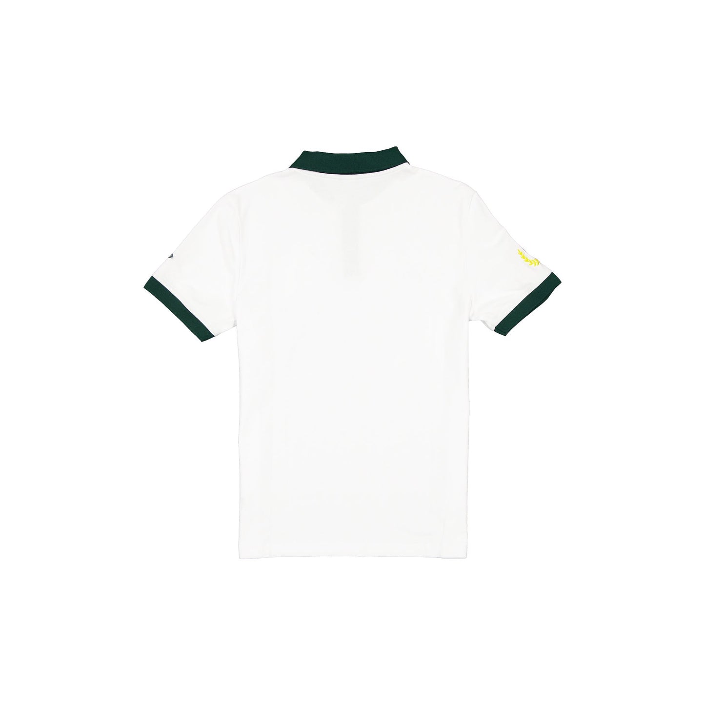 The Caddyshack Bushwood Country Club White Polo features an embroidered Bushwood Country Club shield at the left chest with a Caddyshack golf ball at the right arm.