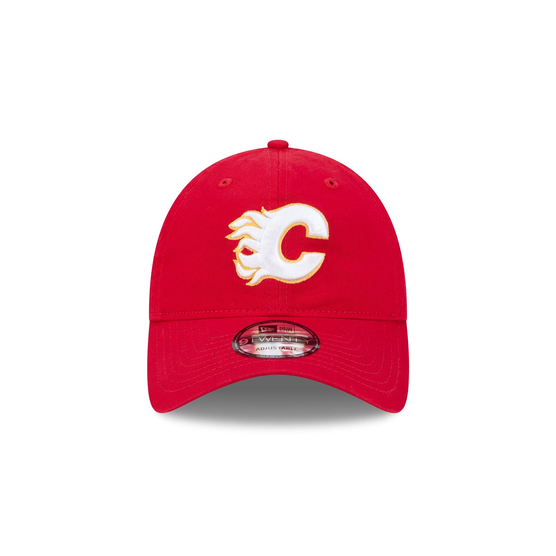 The Calgary Flames 9TWENTY Adjustable Cap features an embroidered Flames logo at the front panels and an adjustable D-Ring closure at the rear.