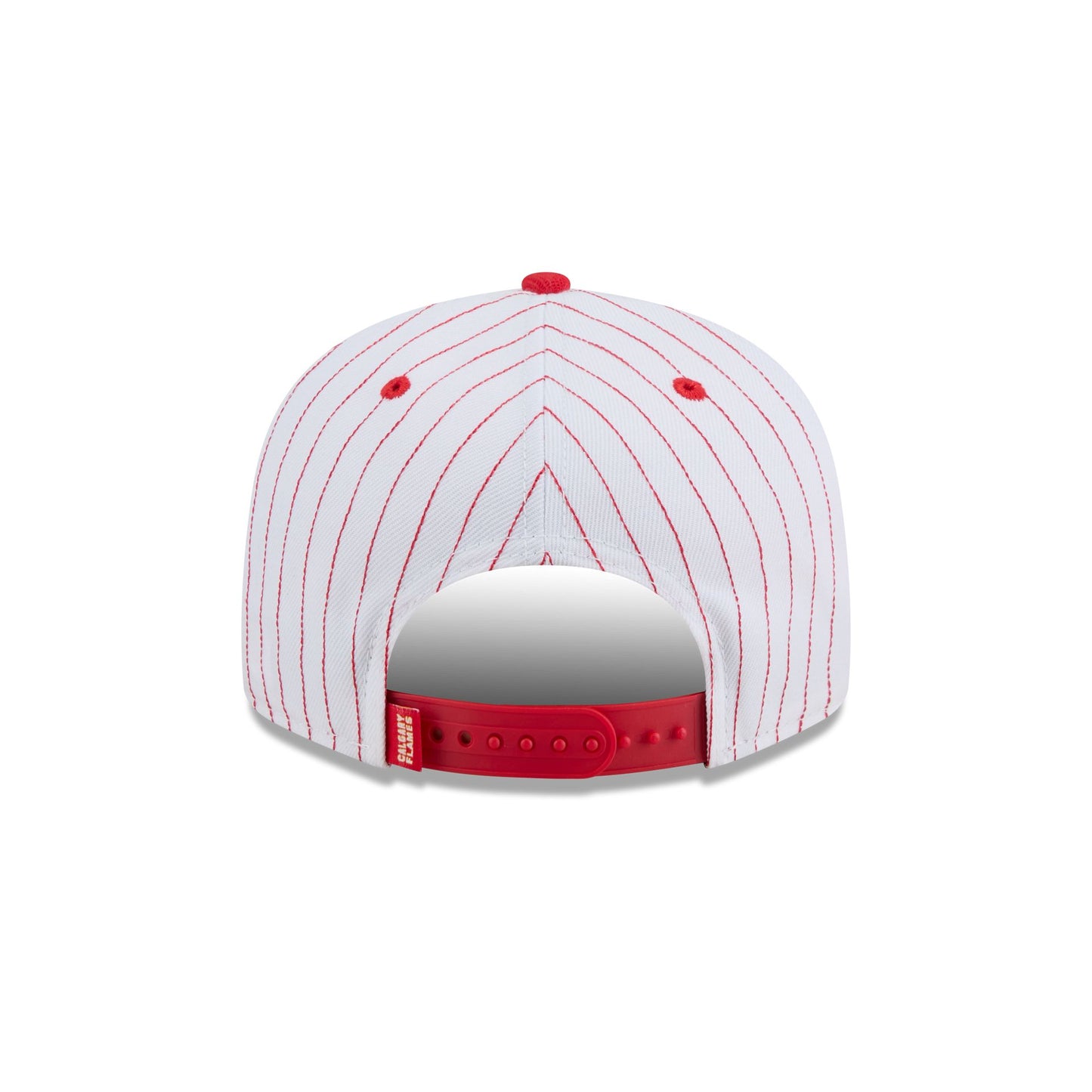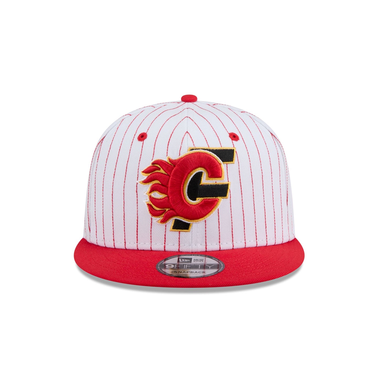 The Calgary Flames Deceptor 9FIFTY Snapback features an embroidered Flames deceptive logo at the front panels with a team logo at the right-wear side. Additional details include a snapback closure at the rear and a gray undervisor.