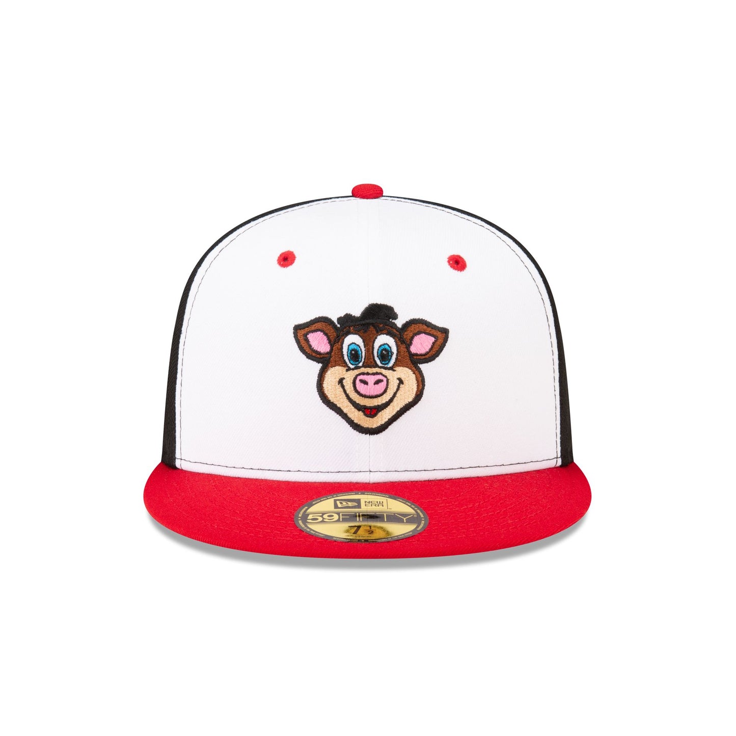 The Carolina Hurricanes Mascot 59FIFTY Fitted Cap features an embroidered Hurricanes mascot at the front panels with team color paneled crown and a gray undervisor. Additional details include a team logo at the right-wear side with a matching NHL Shield at the rear.