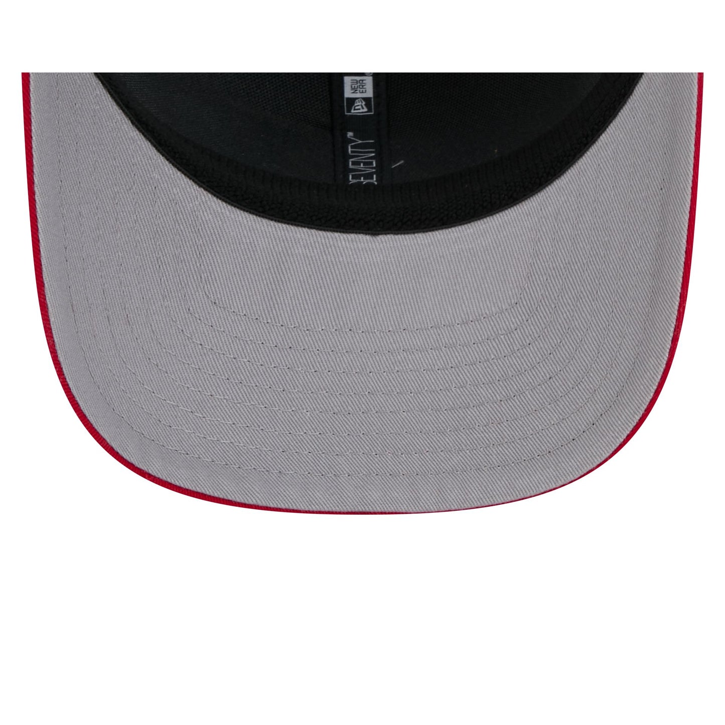 The Carolina Hurricanes Team 9SEVENTY Trucker features an embroidered Hurricanes logo at the front panels with a woven team tag at a snapback closure at the rear and a gray undervisor.
