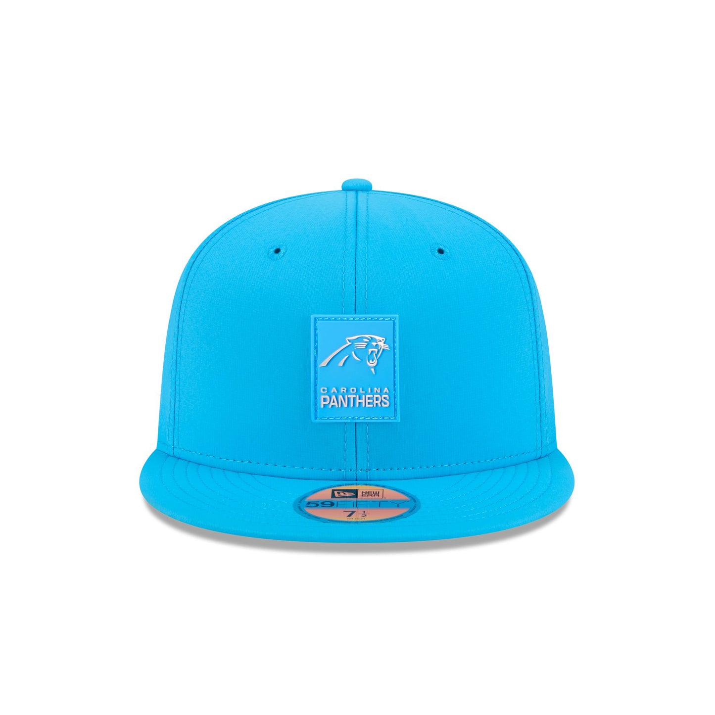 The Carolina Panthers 2025 Sideline Hot Weather 59FIFTY Fitted Cap features a sewn-down silicone Panthers logo patch at the front panels with the Official NFL Shield logo at the rear. The cap has a water-repellent quill tech fabrication throughout, with a quick-dry cushioned sweatband to absorb moisture. The undervisor is accented with a silicone transfer in the team’s colors.