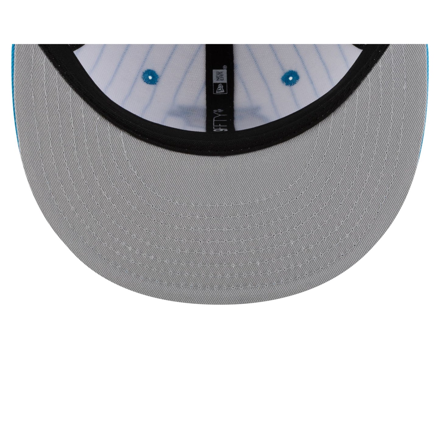 The Carolina Panthers Deceptor 9FIFTY Snapback features an embroidered Panthers deceptive logo at the front panels with a team logo at the right-wear side. Additional details include a snapback closure at the rear and a gray undervisor.