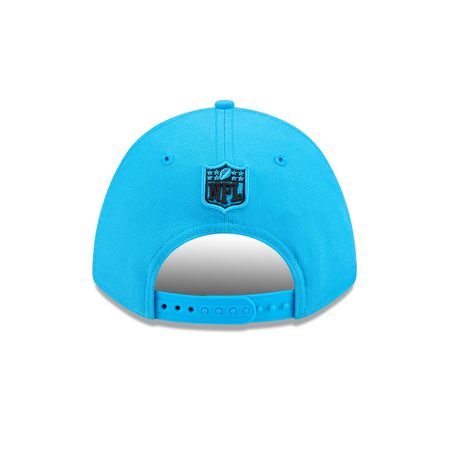 The Carolina Panthers Team 9FORTY M-Crown Snapback features an embroidered Panthers logo at the front panels with a matching NFL Shield logo above an adjustable snapback closure at the rear and a gray undervisor.