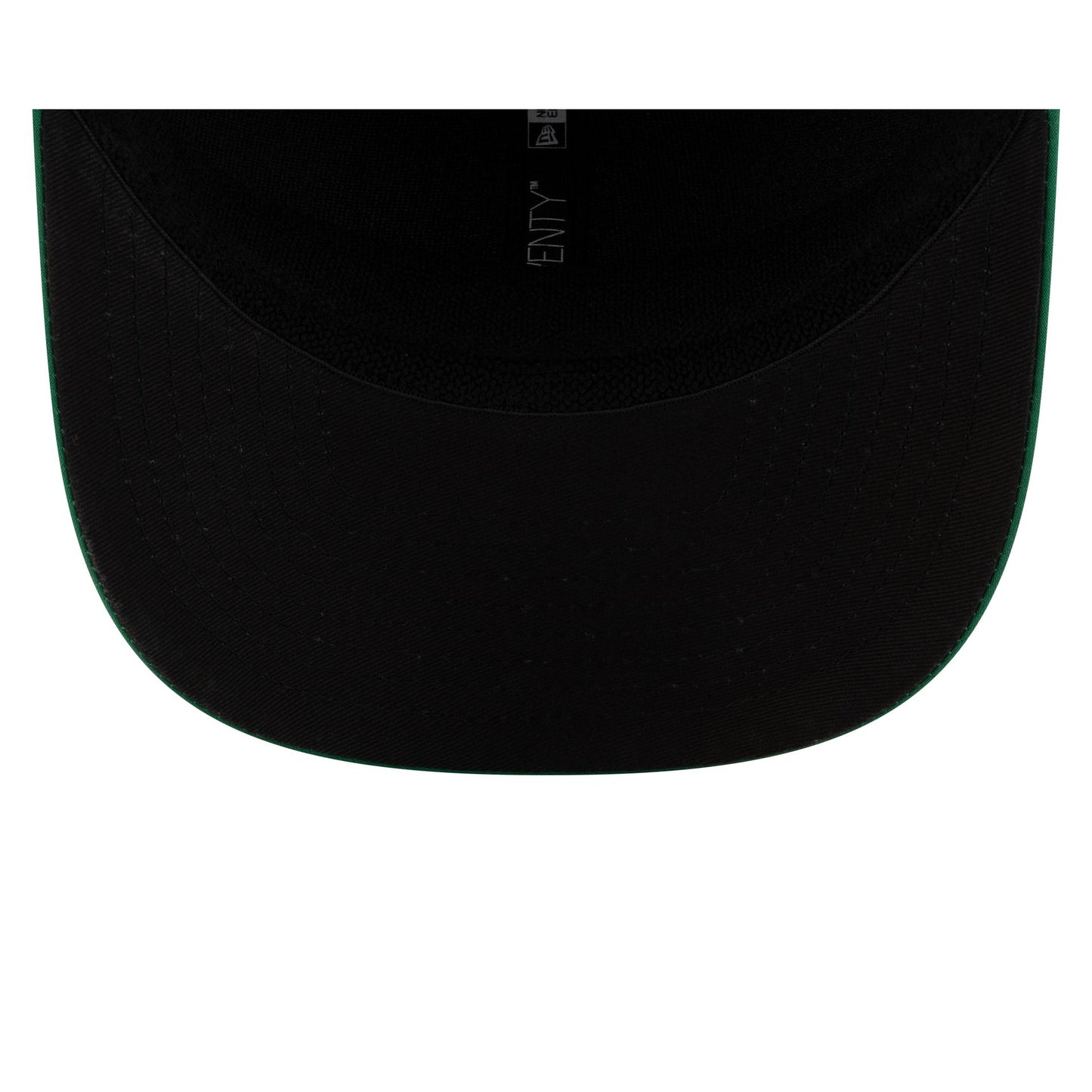 The Celtic FC Core Green 9SEVENTY Stretch-Snap Cap features an embroidered Celtic FC logo at the front panels against a satin fabrication throughout. Additional details include a snapback closure at the rear and a black undervisor.