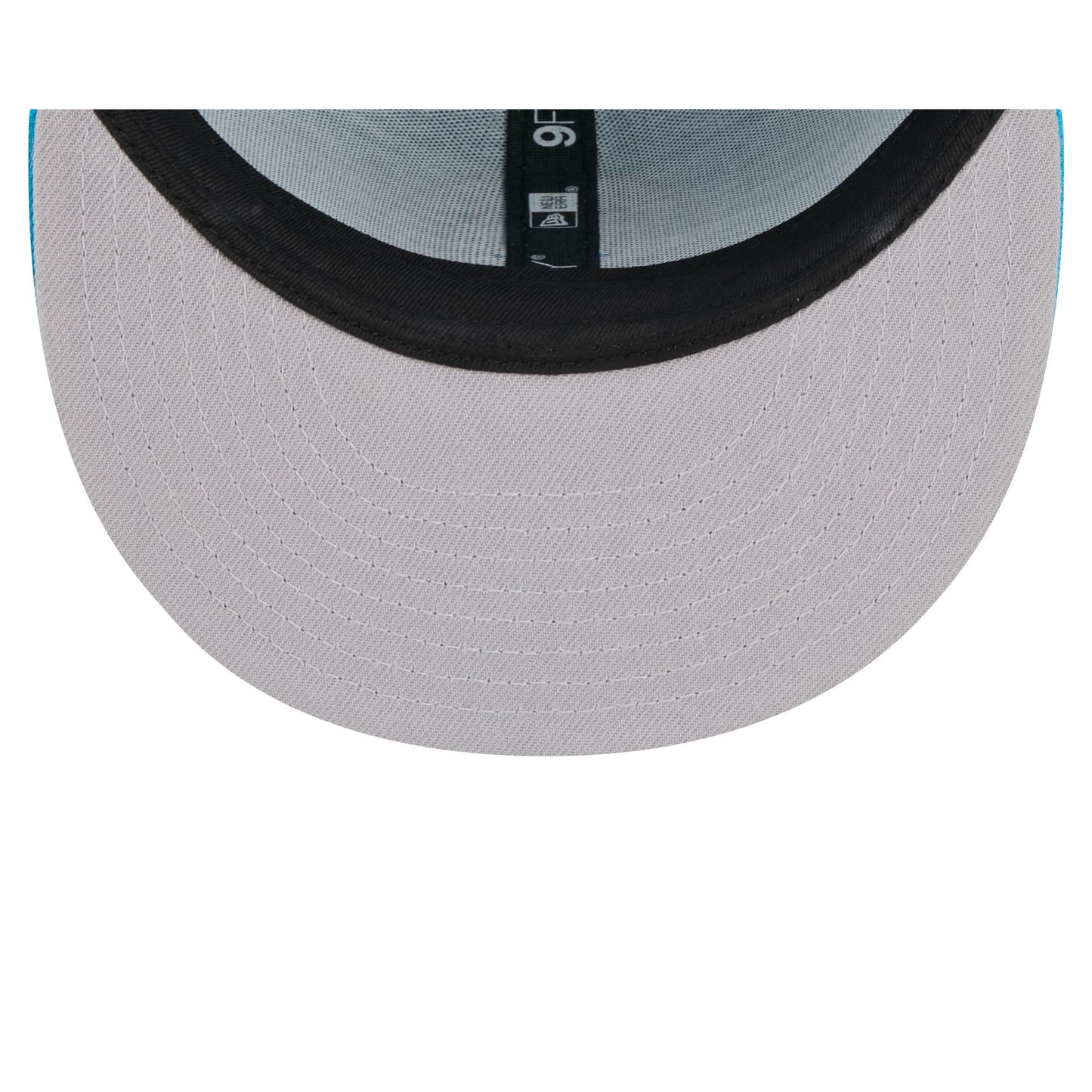 The Charlotte FC 2024 Jersey Hook 9FIFTY Snapback features an embroidered Charlotte FC logo at the front panels with a team inspired graphic at the right-wear side. Additional details include a snapback closure at the rear and a gray undervisor.