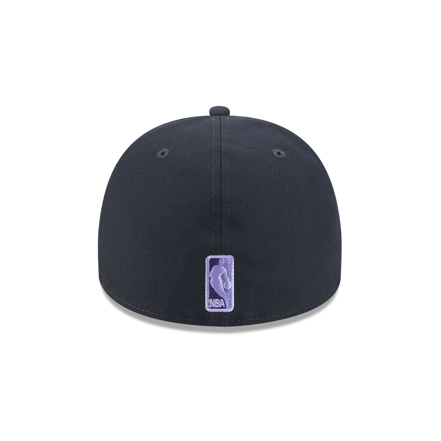 The Charlotte Hornets Navy Lavender 59FIFTY A-Frame Fitted Cap features an embroidered Hornets wordmark at the front panels with a logo at the right-wear side. Additional details include an NBA Logoman at the rear and a lavender undervisor.