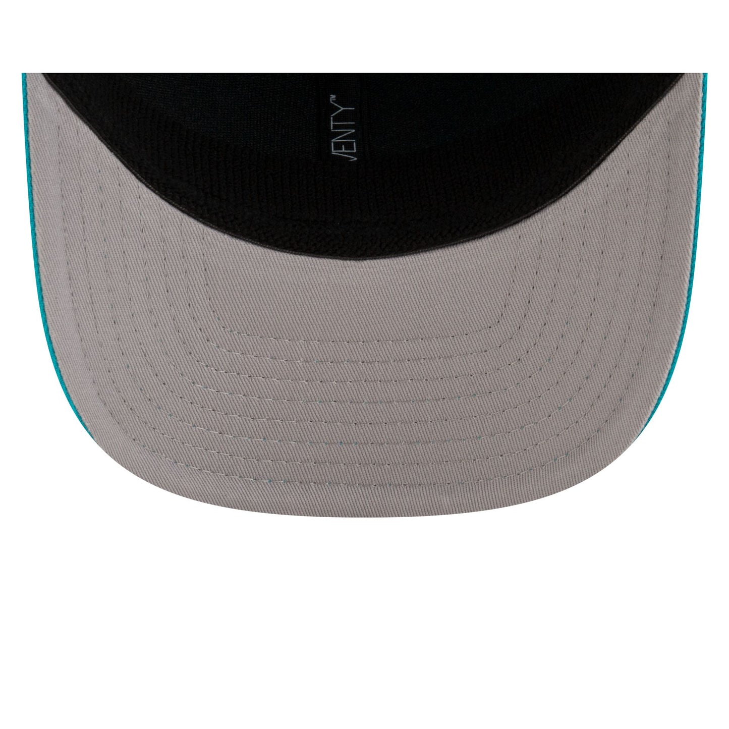 The Charlotte Hornets Team 9SEVENTY Stretch-Snap features an embroidered Hornets logo at the front panels with the NBA Logoman above an adjustable stretch-snap closure at the rear and a gray undervisor.