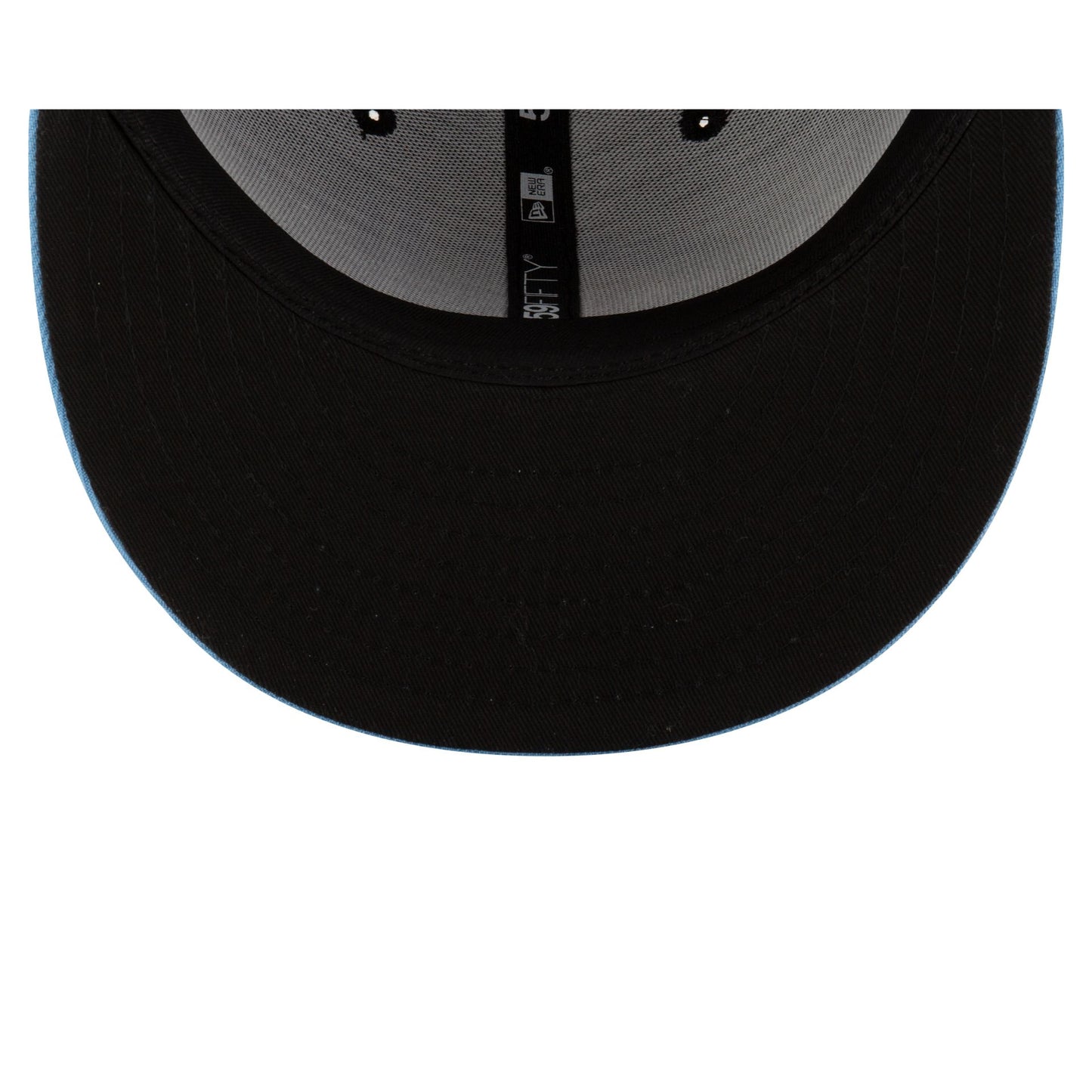 The Charros de Jalisco Black 59FIFTY Fitted features an embroidered Charros logo at the front panels with a matching LMB logo at the rear and a black undervisor.