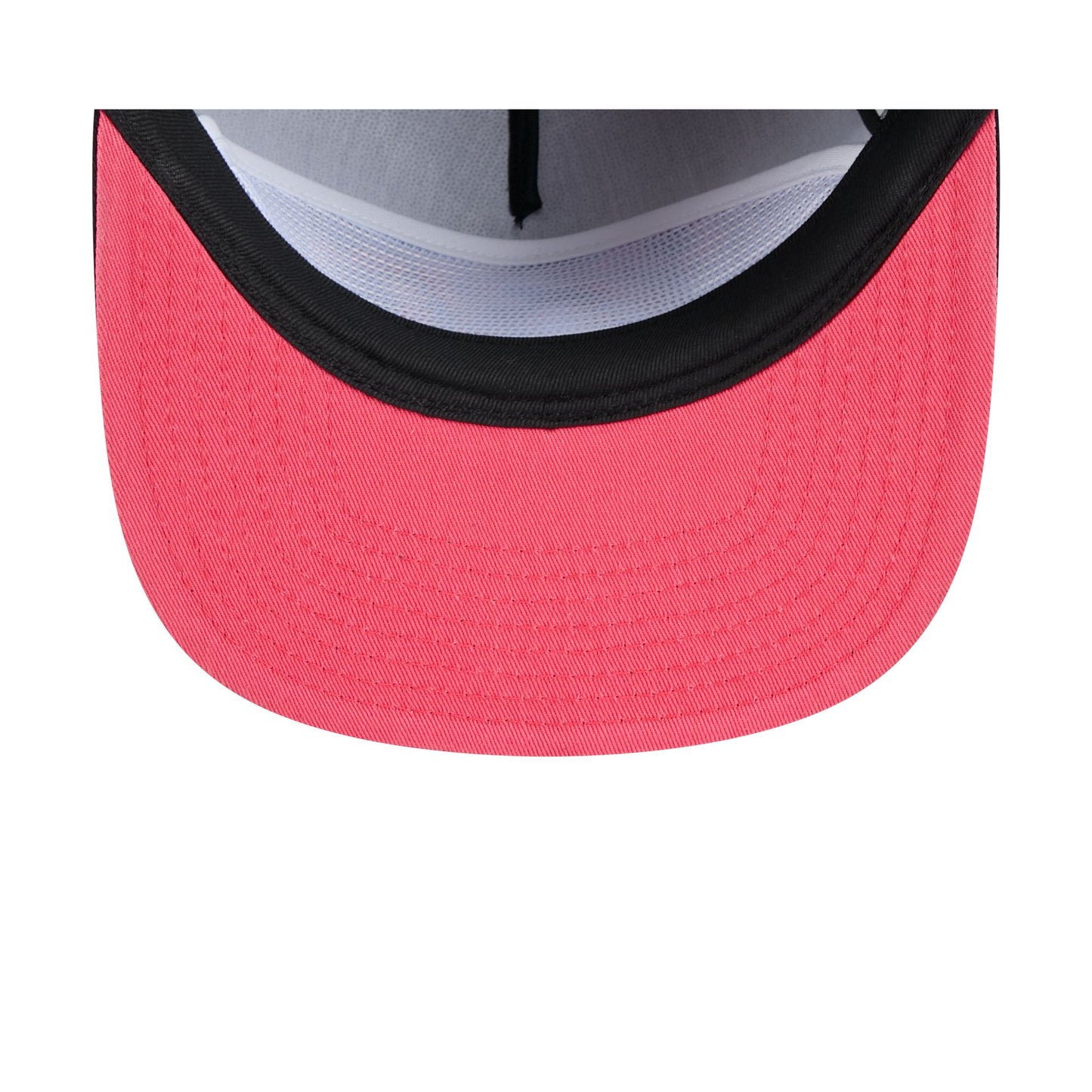 The Charros de Jalisco Two-Tone Black Golfer features a pink embroidered Charros wordmark with a layered logo on top at the front panel with a pink undervisor and a snapback closure at the rear.