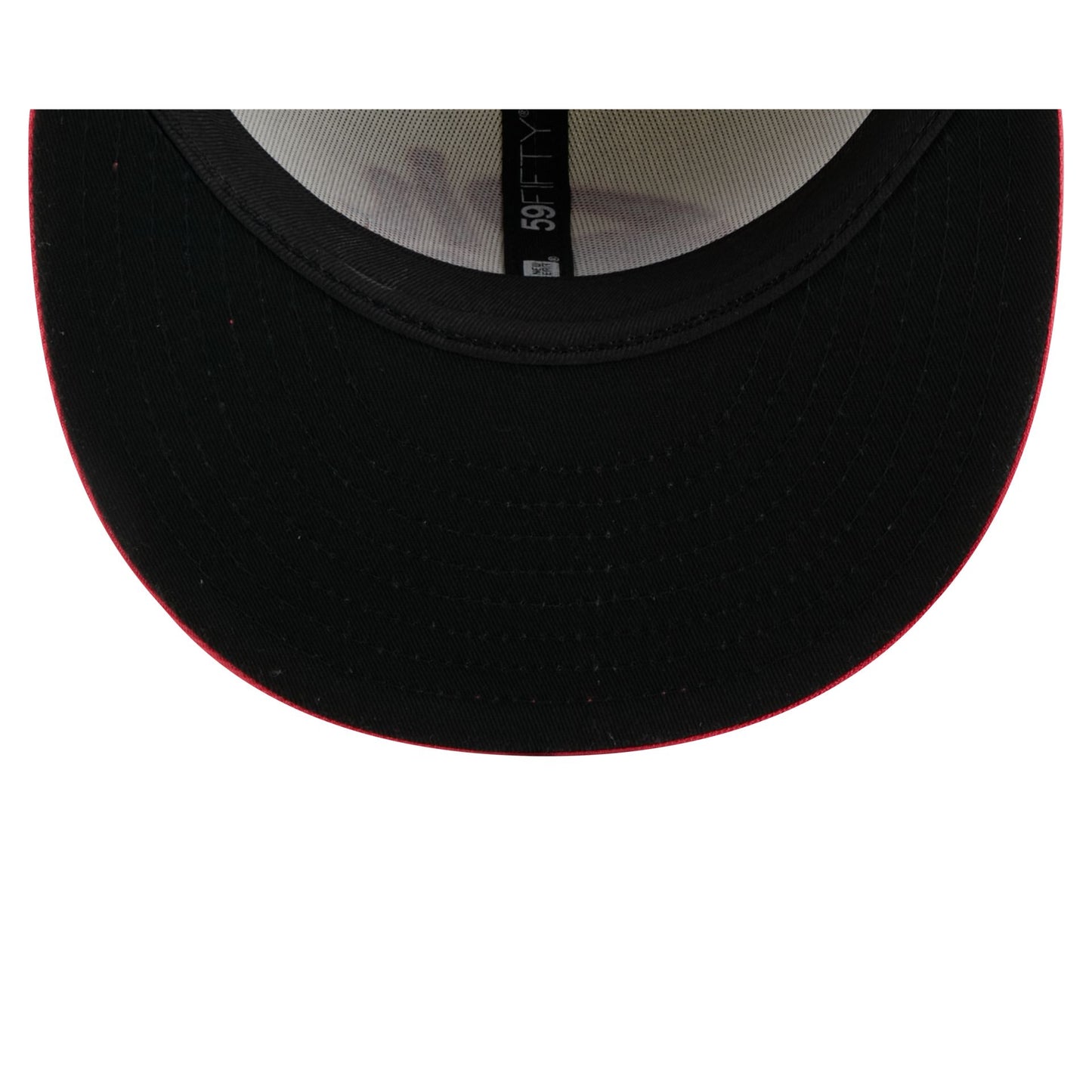 The Charros de Jalisco Two-Tone Coral 59FIFTY Fitted Cap features an embroidered Charros logo at the front panels with a matching team wordmark and roses at the right-wear side. Additional details include a pink embroidered team wordmark at the rear, a coral visor, and a black undervisor.