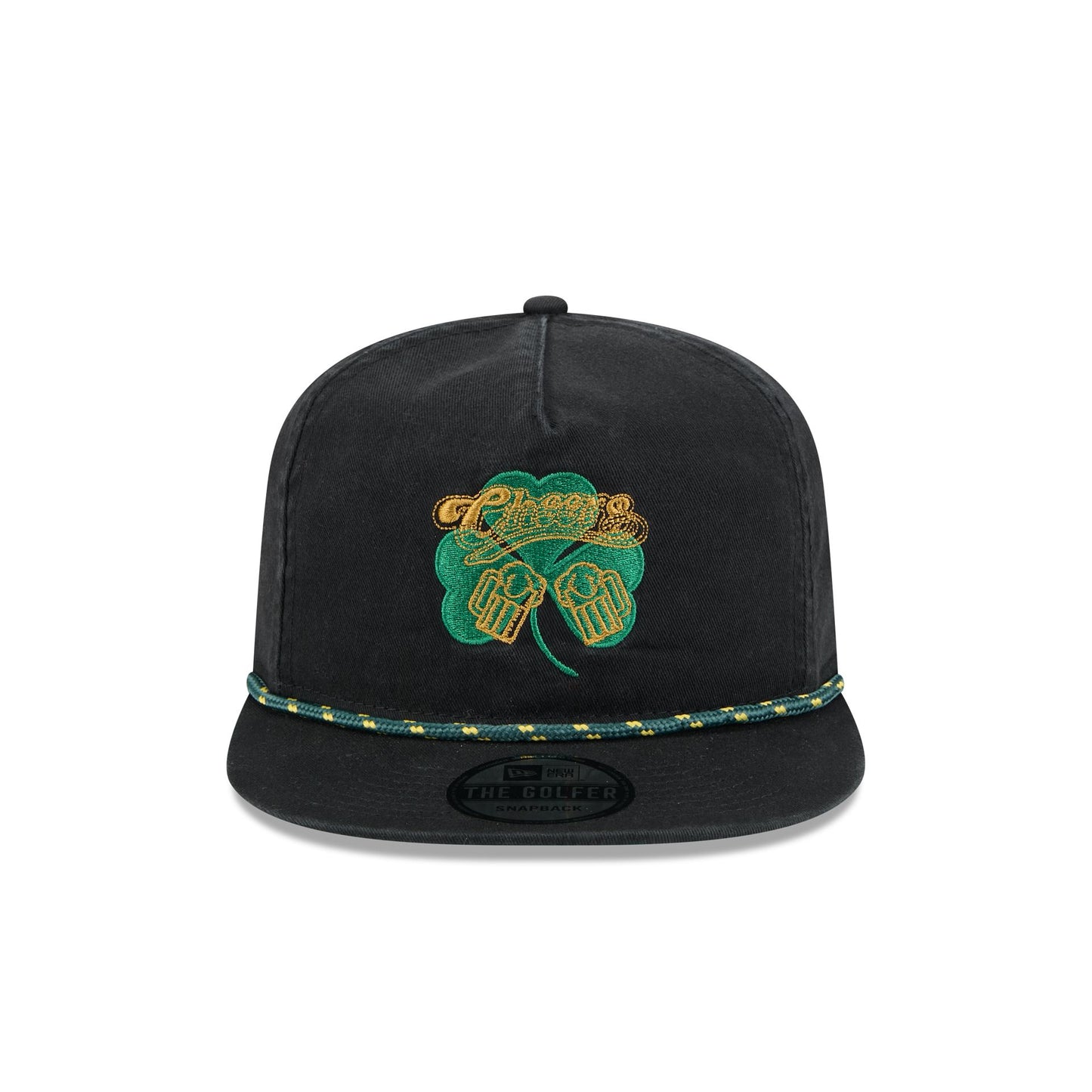 The Cheers Golfer features an embroidered Cheers clover logo at the front panel with a themed detail at the green undervisor and a snapback closure at the rear.