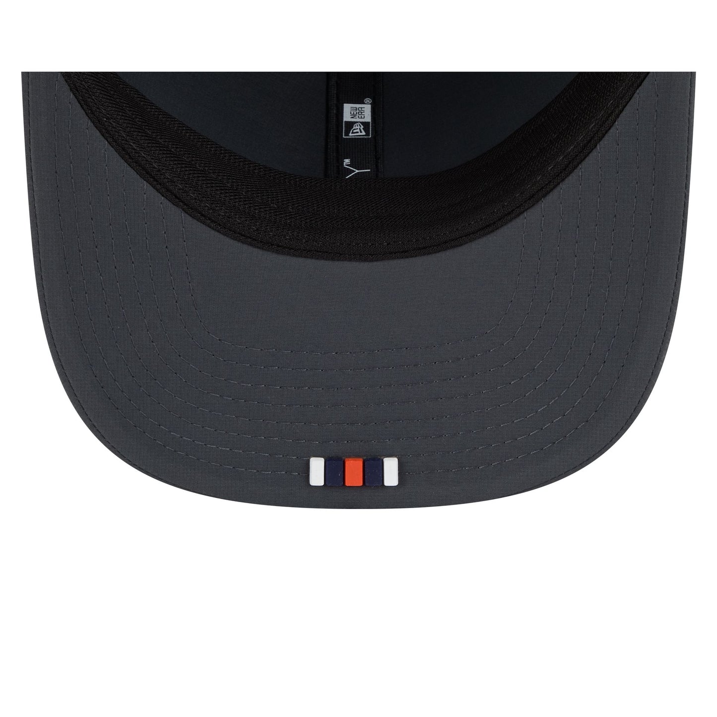 The Chicago Bears 2025 Sideline Cold Weather Steel Clouds 9SEVENTY Stretch-Snap features a sewn-down silicone Bears logo patch at the front panels with a water-repellent quill tech fabrication throughout and an insulated crown with a quick-dry cushioned sweatband. Additional details include the Official NFL Shield logo to the right of a soft silicone snapback closure at the rear. The undervisor is accented with a silicone transfer in the team’s colors.