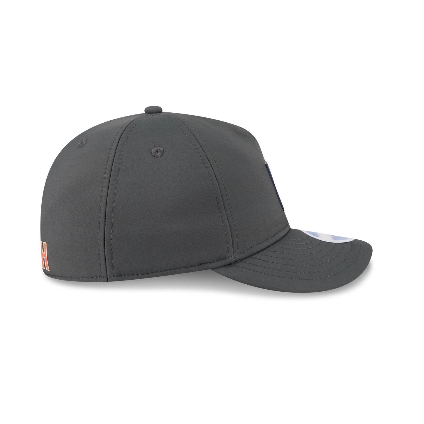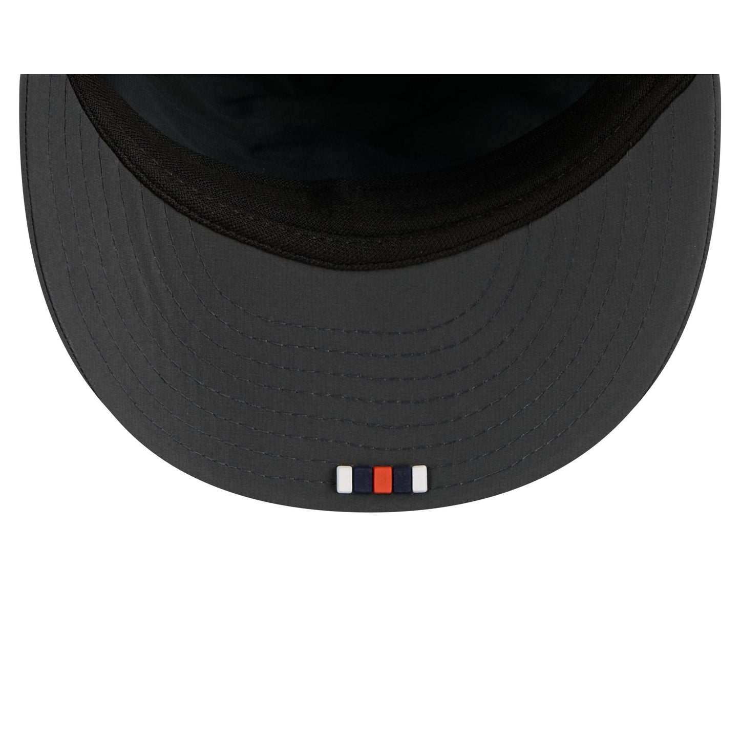 The Chicago Bears 2025 Sideline Cold Weather Steel Clouds Retro Crown 59FIFTY A-Frame Fitted Cap features a sewn-down silicone Bears logo patch at the front panels with the Official NFL Shield logo at the rear. The cap has a water-repellent quill tech fabrication throughout, with an insulated crown and quick-dry cushioned sweatband. The undervisor is accented with a silicone transfer in the team’s colors.