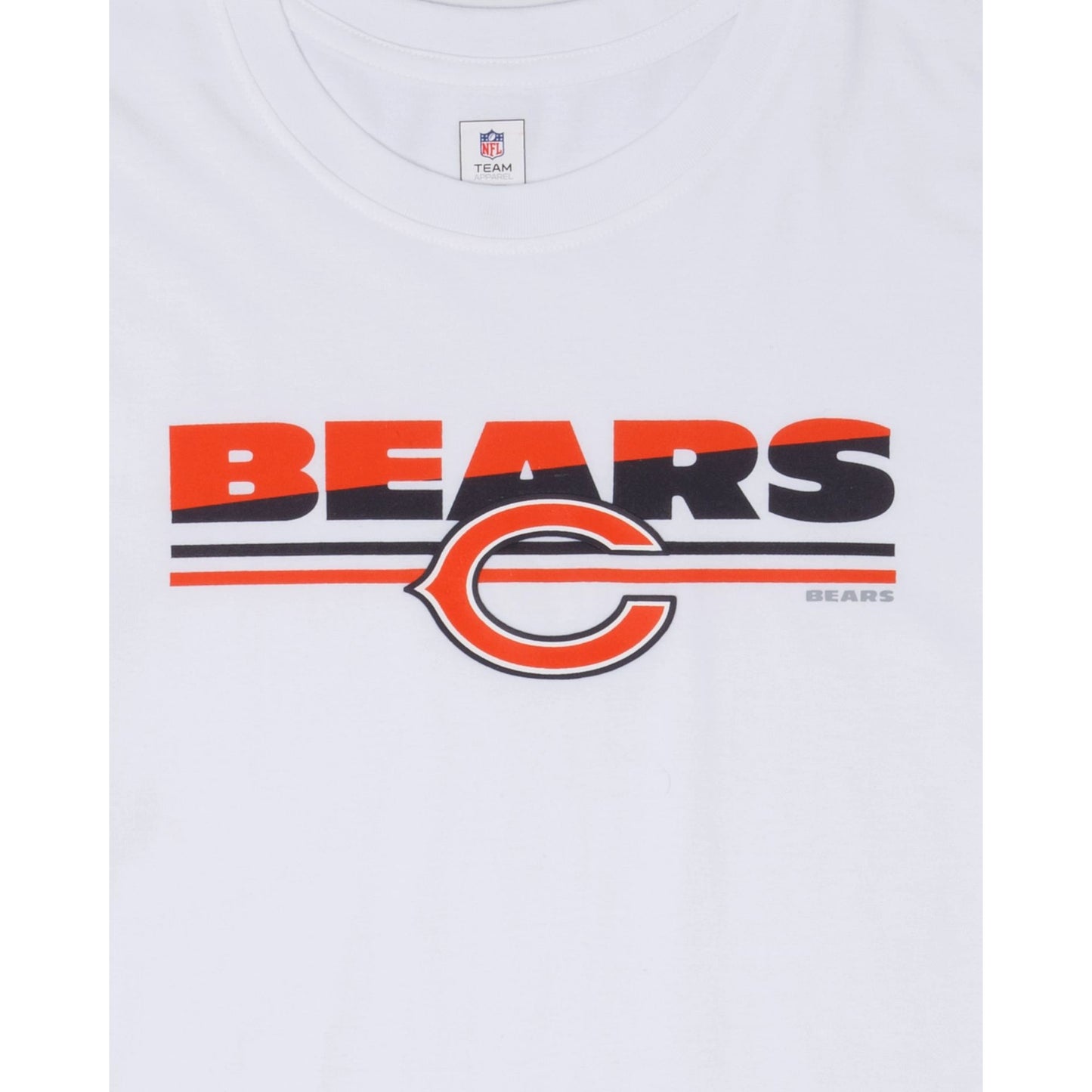 The Chicago Bears 3rd Down T-Shirt features a screen-printed Bears wordmark and logo at the front with a split hem at the left and right-wear sides.