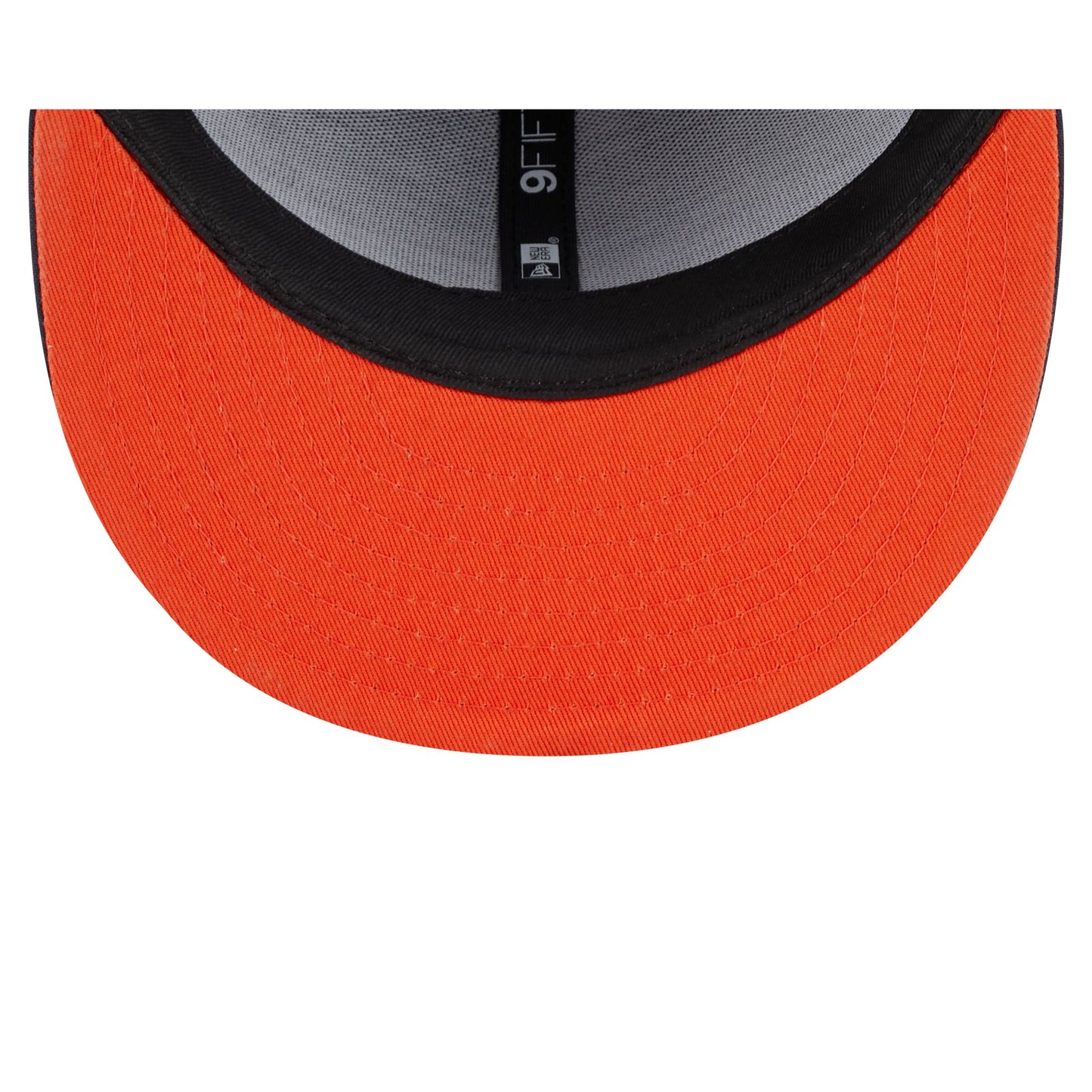 The Chicago Bears Kids Helmet 9FIFTY Snapback features an embroidered Bears helmet design throughout the hat with a team tag on a snapback closure at the rear.